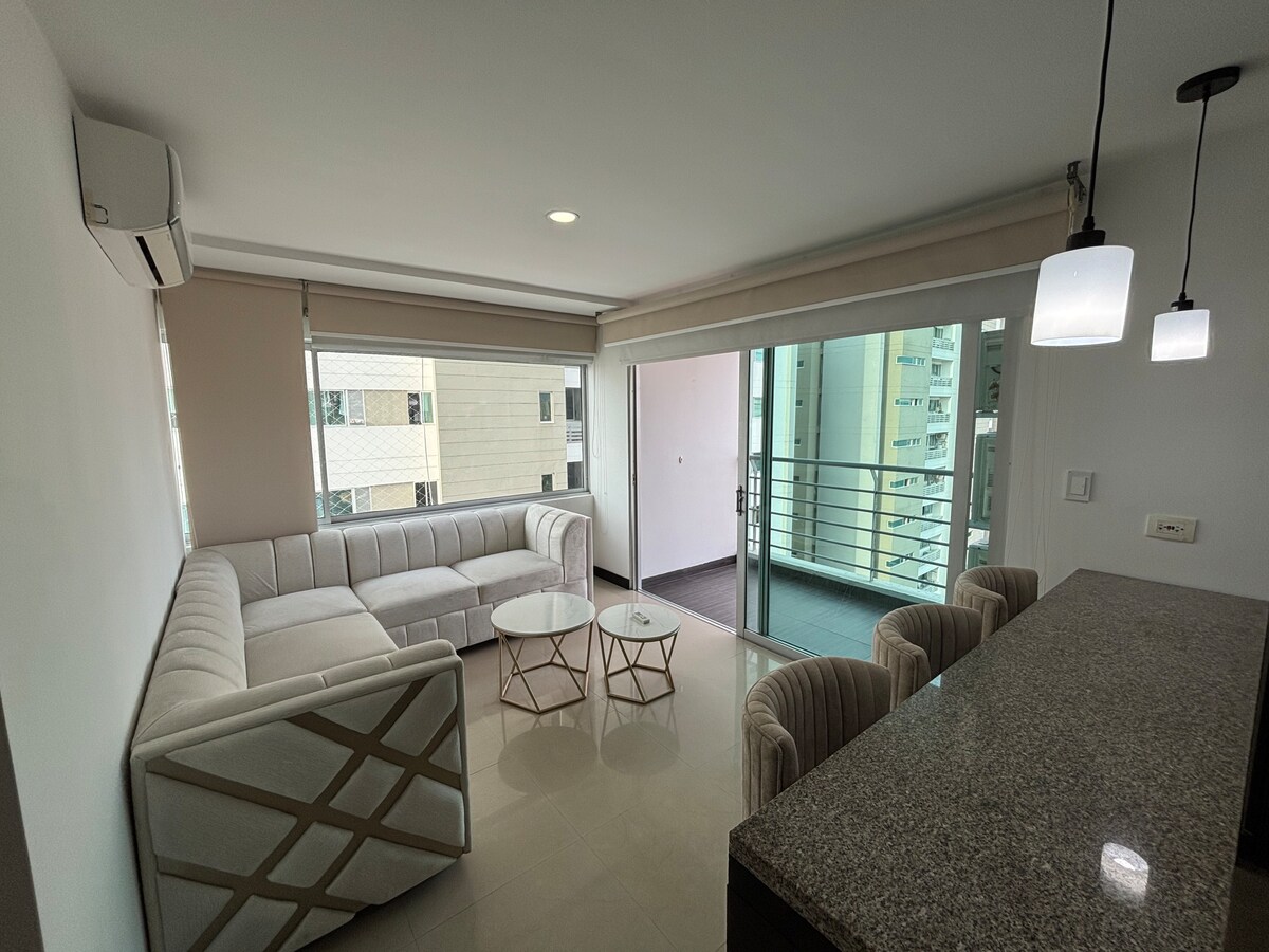 Espetacular apartamento novo tipo estúdio, totalmente equipado e mobilado com todos os confortos para negócios e/ou turismo. Tem uma excelente localização, perto e com fácil acesso a: shopping centers (Viva, Buenavista), restaurantes, área corporativa, bancos, supermercados e muito mais. A torre tem um saguão tipo hotel, estacionamento gratuito, segurança 24 horas, elevadores. Academia, jacuzzi, playground e coworking em breve.