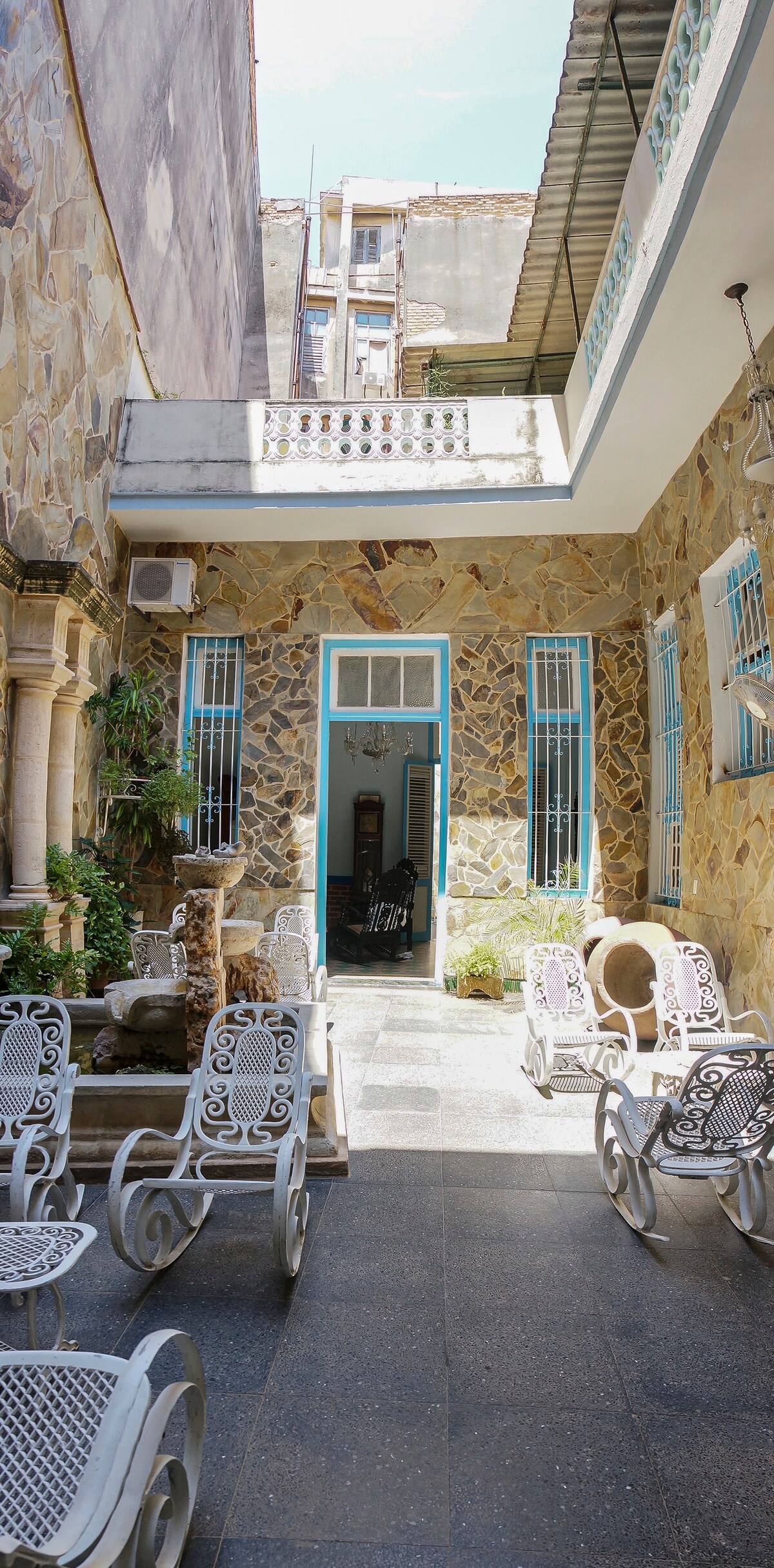 Este hotel boutique fundado pelos jovens artistas cubanos Greta Reyna e Adonis Ferro oferece um ponto de encontro para os amantes da arte. O apartamento, localizado no segundo andar e de fácil acesso pela escada comum ou pelo elevador, possui dois quartos e banheiros privativos. Este edifício de estilo eclético foi construído na década de 1930 pelo ex-proprietário do Hotel Nacional para seus hóspedes VIP. Portanto, cada detalhe da construção é uma joia em si.