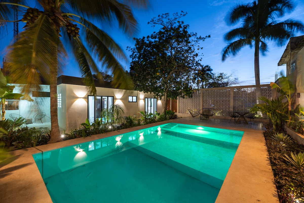 Apartamento espaçoso dentro de casa colonial, perfeito para 2. Localizado a leste do centro de Mérida, perto do bairro ChemBech, a apenas 20 minutos a pé da praça principal. Recebe viajantes que buscam calma e introspecção. Único em estilo e design, com acabamentos de luxo, garante privacidade longe do centro da cidade. O apartamento é completamente privado, no andar inferior. Tem uma cozinha totalmente equipada e sala de estar, uma piscina, um jardim, um terraço, um quarto king com uma casa de banho em mármore.