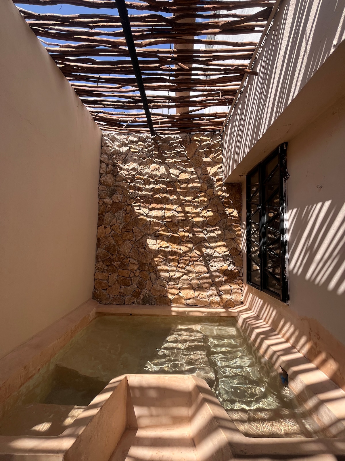 Aproveite a simplicidade deste alojamento completamente remodelado em janeiro de 2025, agora com jacuzzi tipo Alberca, tranquilo e central , em frente ao novo Gran Parque de la Plancha você pode chegar ao monumento os conquistadores e Paseo de Montejo em 10 minutos a pé. nas proximidades há supermercados (Oxxo, Extra e Walmart), restaurantes, livrarias, museus, parques, bares, cafés, tradicional mercado de Santa Ana, Lavanderías, área de banco para câmbio de moeda, etc.