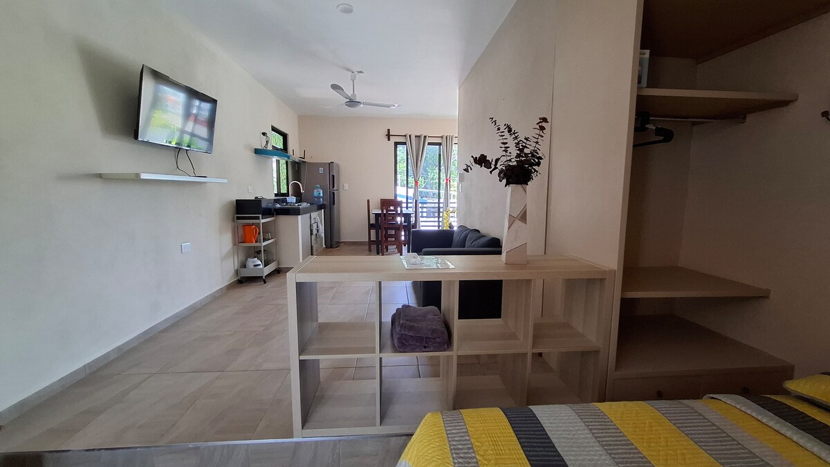 Acomodação tranquila e convenientemente localizada. Loft novo e confortável totalmente mobiliado, equipado e climatizado com uma varanda para fumar. Localizado em frente à Plaza Altabrisa, cercado por áreas comerciais, escolas hospitalares, etc., e muito perto da cidade esportiva. 8 minutos para a fábrica da Coca Cola (ixtacomitan A 8 minutos da Plaza Cristal A 8 minutos do Estádio Centenário Ideal para casais ou famílias de 3 pessoas que viajam para estadias de curta ou longa duração.