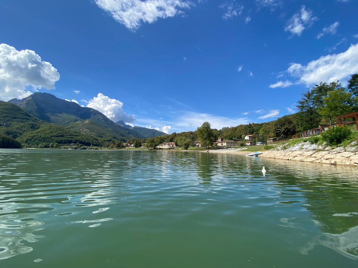 A casa pode acomodar um máximo de 4 pessoas. Situa-se em Vergaia, uma aldeia no Lago Vagli, ao longo do caminho da Via Vandelli, uma antiga aldeia submersa pelas águas. A aldeia é ideal para quem quer fugir da cidade e encontrar tranquilidade. O exterior cercado oferece uma mesa, sofás, banheira de hidromassagem com vista para o lago, churrasqueira e estacionamento na propriedade na propriedade. Imposto de turismo a ser pago no momento da chegada