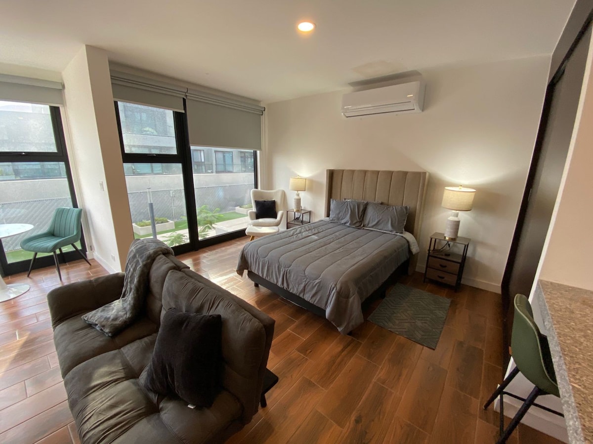 Nosso estúdio foi cuidadosamente projetado para oferecer todas as comodidades essenciais, garantindo uma estadia agradável durante sua visita a Tijuana. Proporciona um ambiente seguro e sereno, com decoração moderna e minimalista. Convenientemente localizado na Zona Río 3a Etapa, é uma escolha ideal para viagens de negócios, lazer ou turismo médico. Você vai encontrá-lo muito perto de restaurantes, locais de entretenimento, centros comerciais e empresas em Tijuana. Esperamos que você aproveite sua estadia! Você vai adorar!
