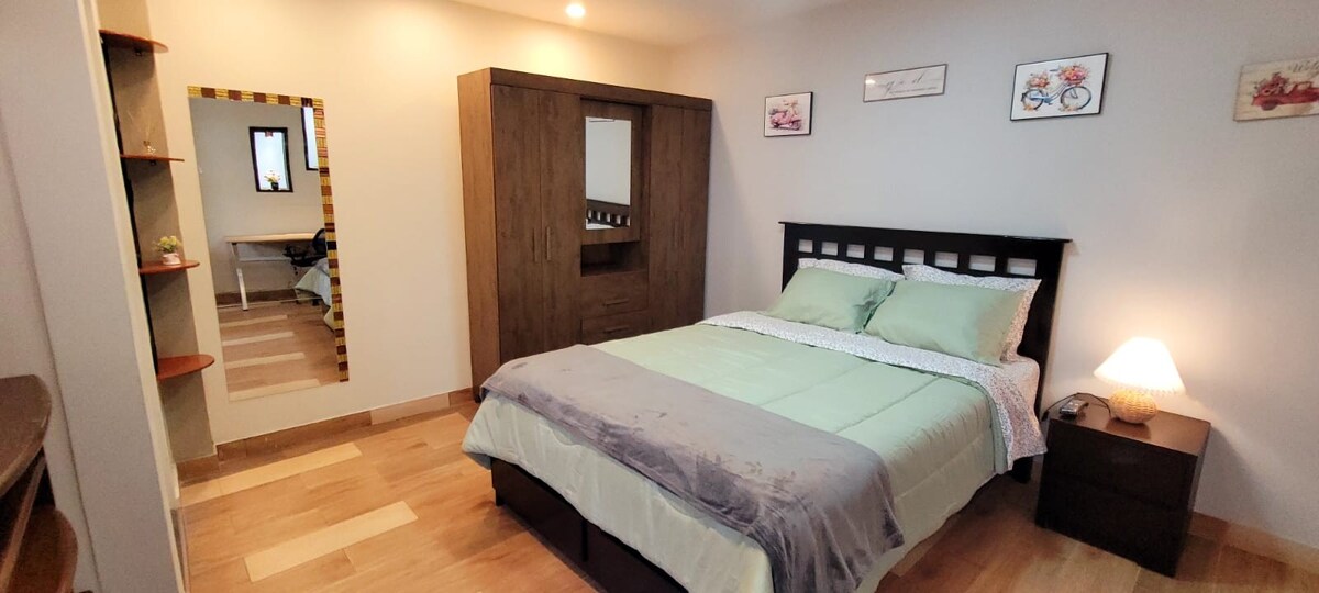 Lindo Miniapartamento totalmente mobiliado, recentemente reformado, perfeito para viajantes de negócios, casais ou viajantes solos. Localizado no terceiro andar, bairro residencial seguro de Cajamarca, vigilância por vídeo permanente. Cama de casal, roupa de cama limpa, lençóis 100% algodão com 200 fios, sofá, escrivaninha, TV + Netflix, Wi-Fi, mesa e cadeiras, a cozinha inclui utensílios e talheres, variedade de utensílios, jarro de água alcalina. Banheiro independente e closet.