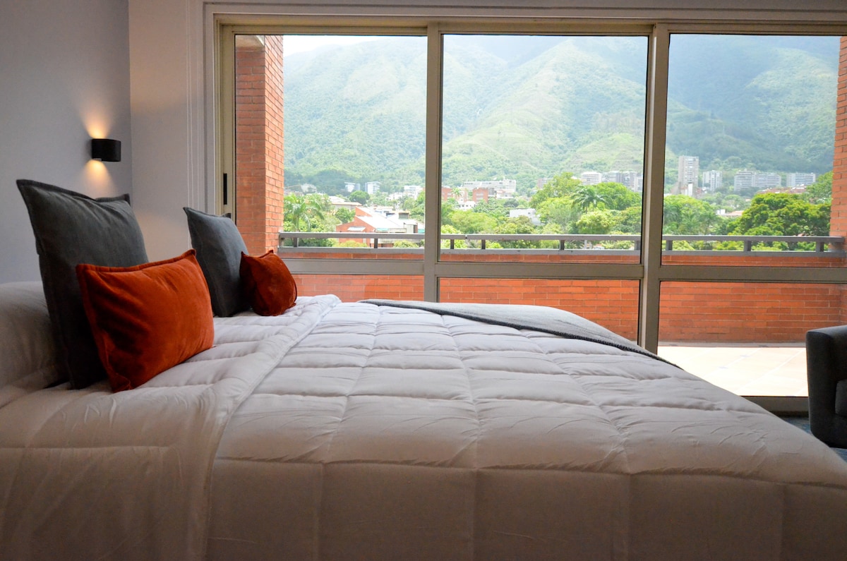 Cobertura moderna com o melhor horizonte de Caracas. Desfrute de vistas diretas do Cerro Ávila do seu terraço privado com mesa de estar, sala de estar com sofá premium e TV. Cozinha integrada de alta qualidade, Wi-Fi de 200 Mbps e design de linha limpa. No coração de Altamira: a 3 minutos da Lee Hamilton Steak House e dos consulados. Elegância nas alturas para viver a cidade com estilo!