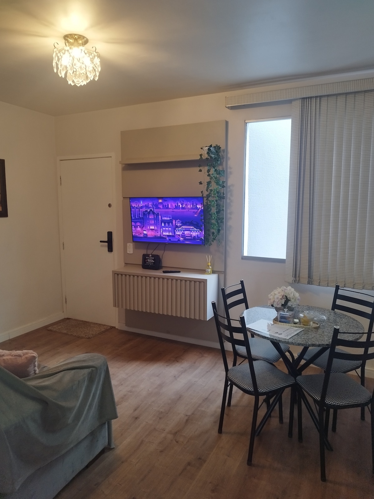 Apartamento novo e recém decorado. Espaco moderno e aconchegante com 50 m distribuídos em 2 quartos, 1 banheiro, sala e cozinha gourmet. Hospedagem com roupas de cama e toalhas inclusas (esterilizadas); Rouparia padrão hotelaria, utensílios premium Tramontina e equipamentos novos. Armários Planejados em todo apto. Projeto de iluminação profissional. Também possui quadra, playgrounds, espaço fitness, espaço gourmet.