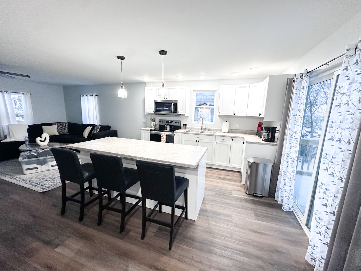 Fique em um dos Airbnbs mais bem avaliados de Champaign, localizado em um bairro tranquilo perto da UIUC! Esta casa de 2 quartos lindamente remodelada possui uma cozinha moderna com eletrodomésticos de aço inoxidável e bancadas de granito. A sala de estar oferece um sofá seccional e smart TV. Ambos os quartos incluem colchões de pelúcia king-size para um sono tranquilo. Um banheiro tipo spa, garagem para 2 carros e quintal tranquilo completam a estadia. Ideal para famílias, casais, profissionais em viagem e estadias prolongadas!