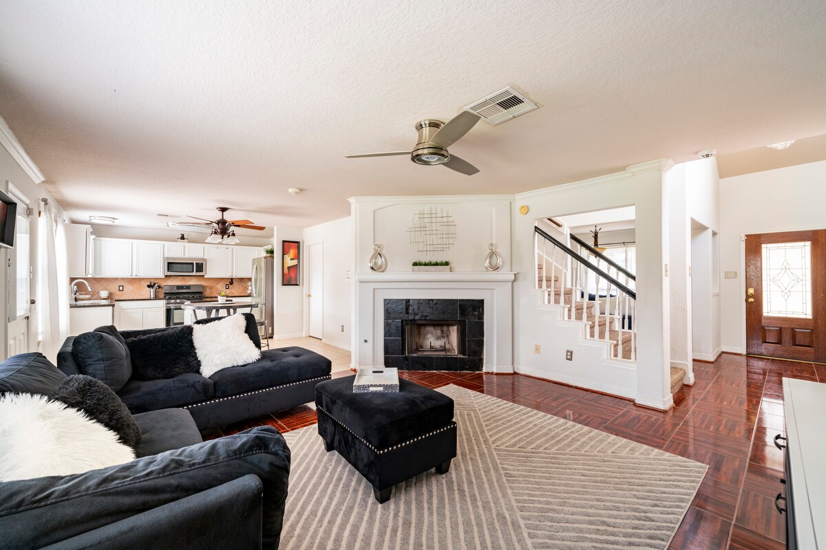 Sem taxas de limpeza! Esta luxuosa e moderna casa inteligente possui 3 quartos com 2 banheiros, uma TV Samsung de tela grande de 85 polegadas, som surround Dolby Atmos, mesa de pingue-pongue, mesa de bilhar, cornhole, pebolim, churrasqueira e muito mais! A casa tem 3 quartos e 2 banheiros, juntamente com uma sala de estar e cozinha. A escada tem bar molhado e pebolim. A casa fica a 10 milhas a leste do centro da cidade. Apenas a uma curta distância de carro de Minute Maid, TDECU e muito mais! Isso é um duplex. Se você quiser reservar o 2º andar também me avise
