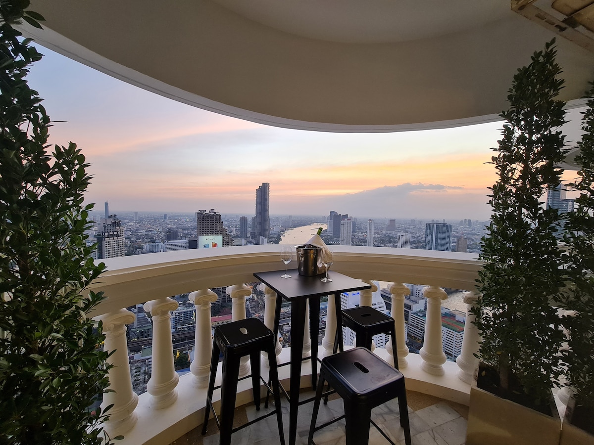 Enjoy Bangkok Trip with unforgettable Chao-Phraya river panorama view on 5-stars newly modern renovated 69 SQM room. Reach All of Bangkok within 3 mins walking distance to Skytrain and Expressway, direct to Center of Bangkok Snap and Taste the local Thai Street food in just 1 min Convenient Life with 2 mins walk to Shopping mall and 24/7 convenience store. Dining and Chilling on the most famous Rooftop Bar in Bangkok, Sirocco, where the Hangover 2 was filmed WiFi & Netflix are provided!!