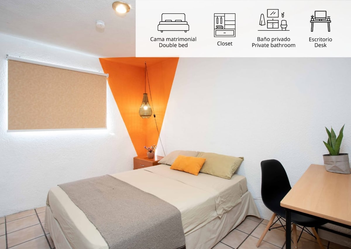 Habitación/estudio amplia e independiente con baño completo privado, ambiente tranquilo. Ideal para relajarse o trabajar. Vista a la ciudad desde el patio, así como de la habitación hacia la alberca, jardín y terraza. Dentro del Fraccionamiento encontrarás parque, iglesia, miradores y la entrada al bosque Mágico (Primavera), aquí podrás realizar actividades al aire libre como Senderismo, jogging, ciclismo y disfrutar de hermosas vistas.
