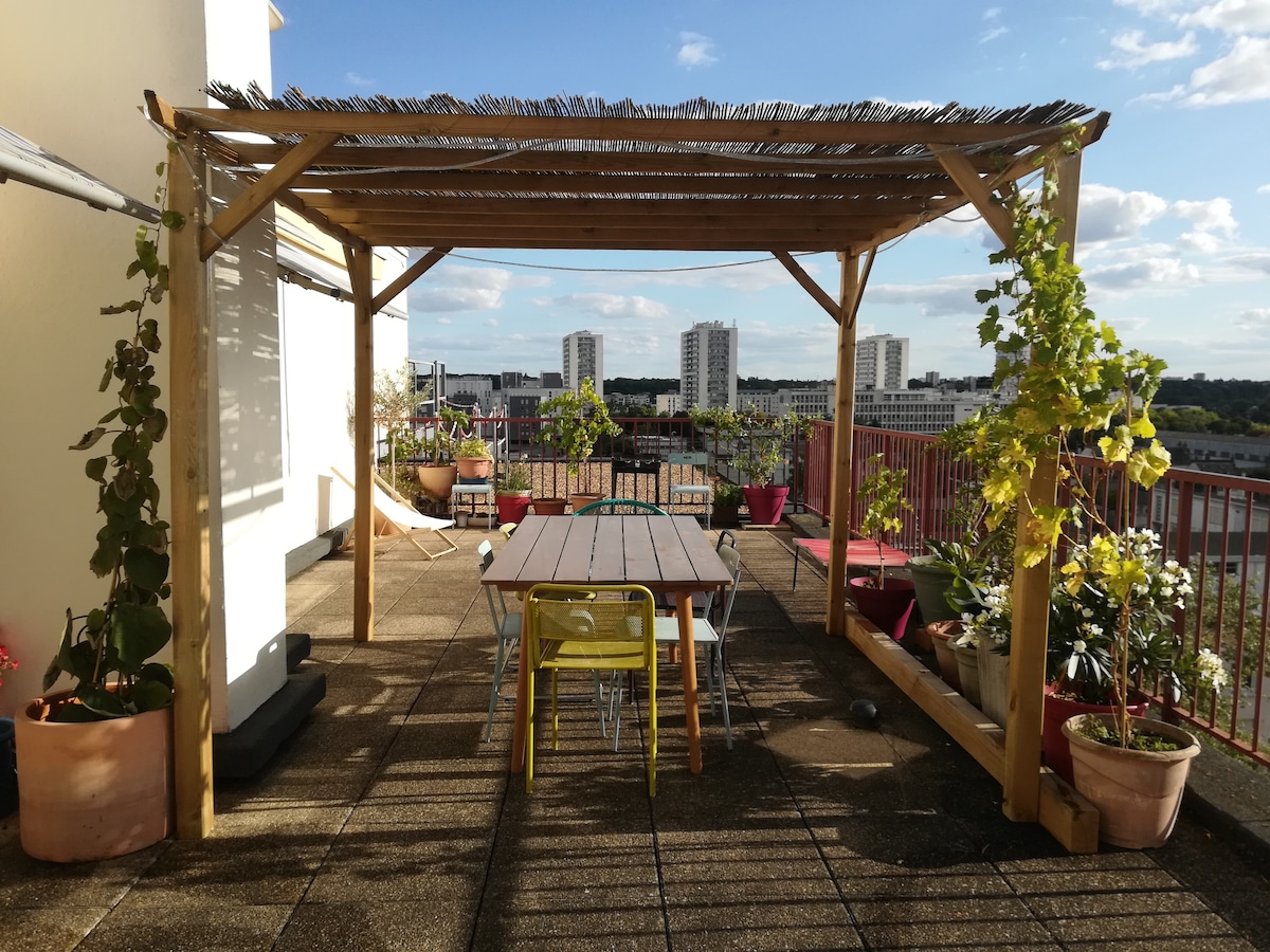 Acomodação elegante e central a apenas 450 m da estação ferroviária Tours e da Place Jean Jaurès. Conosco, nos esforçamos para atualizar os valores originais de um Airbnb; boas-vindas calorosas, pequenos toques, café da manhã caseiro oferecido, etc. Para os mais observadores, você não verá mais comentários em nosso anúncio para o período de setembro a junho. De fato, dada a falta de alojamento estudantil no mercado, optamos por disponibilizar o nosso.