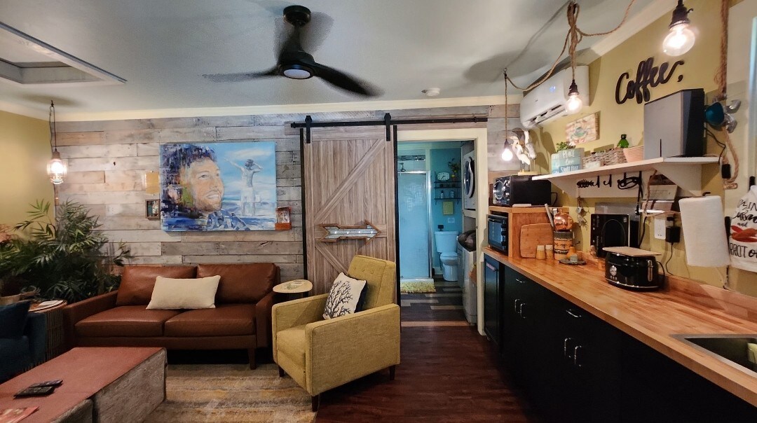 Laid back guest house located close to the marsh and 15 minutes south of the Historic District. Quiet locale with private entrance, large yard and small but cozy interior that includes a queen bed, desk and kitchenette area. Nestled under a grand live oak, the Half House is home to many birds and a barred owl that often takes residence upon the branches. Laundry avail too. For larger reservations, the main house is also on AirBnb 'Stylish & Spacious Abode in Savannah.'