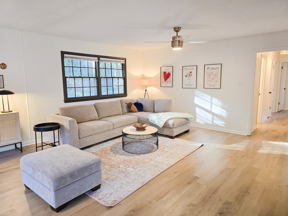 A única parede de selfie de Pittsboro! Desfrute deste bangalô exclusivo mobiliado em estilo glamour Hollywood Regency com acesso facilmente acessível a todas as comodidades do centro da cidade. Relaxe na espaçosa varanda da frente ou desfrute da fogueira no quintal. Caminhe até os comerciantes do centro e passe o dia fazendo compras de antiguidades ou desfrute de comidas e bebidas de uma variedade de restaurantes locais. O novo parque infantil com piscina está chegando ao Chatham Park!