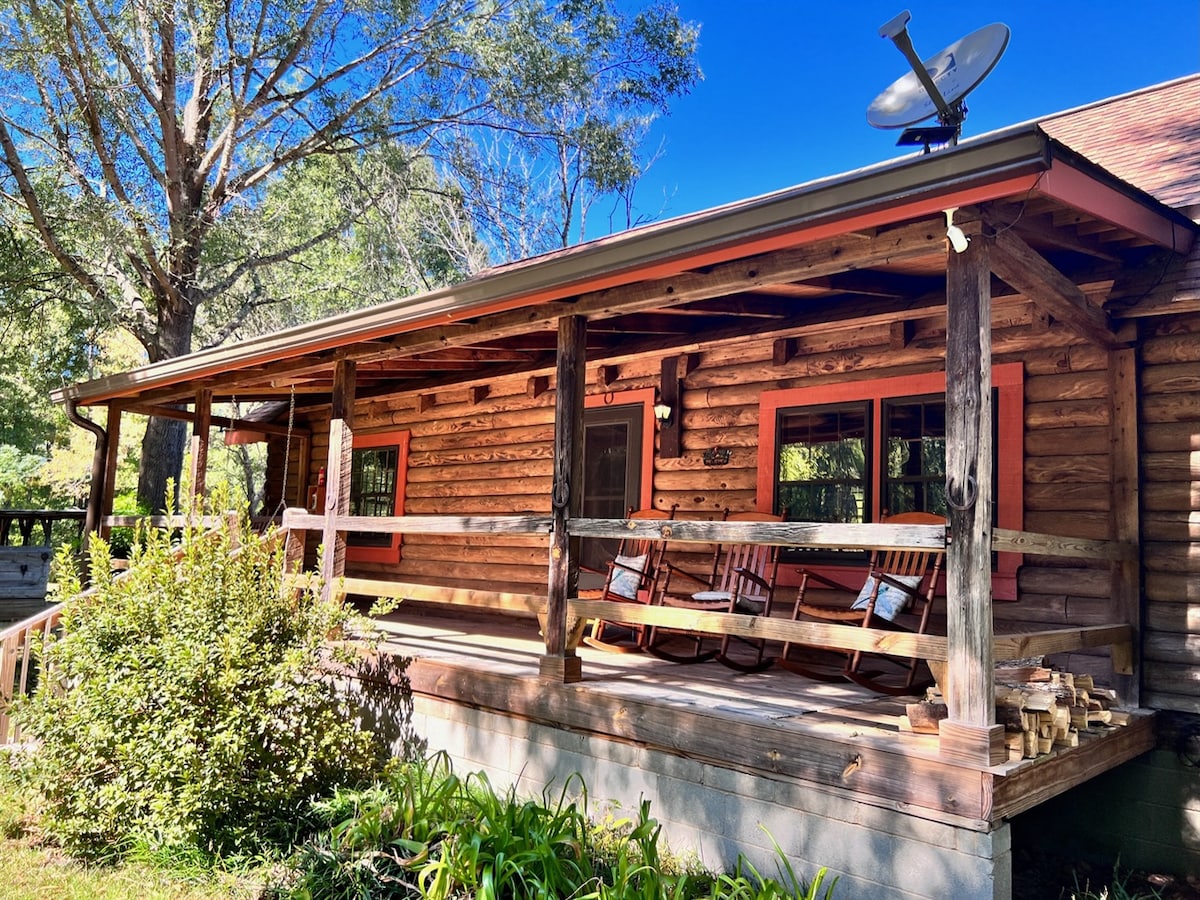 Casa de campo privativa com grande deck e confortável loft para dormir entre as árvores. Uma escada vertical leva a um belo loft de meio andar para dormir. Há arte em todo o espaço. Frigobar e micro-ondas no convés. Os hóspedes usam um belo chuveiro ao ar livre com água quente e fria até que a temperatura atinja o ponto de congelamento. 11/9 ATUALIZAÇÃO - Nosso novo edifício de banheiro aquecido, que inclui um vaso sanitário com descarga, pia quente e fria e chuveiro interno, agora está completo e pronto para o seu uso! Há 2 cães australianos amigáveis na propriedade.