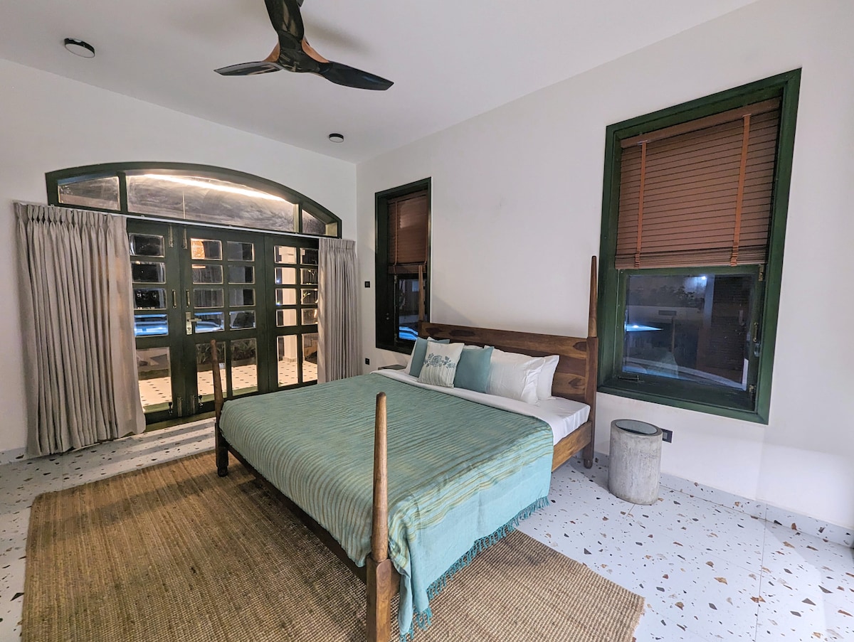 Bem-vindo ao Cove, uma moderna e elegante casa de praia de quatro quartos perto de Mamallapuram, projetada para estadias de grupos de até 12 hóspedes e grupos maiores que procuram festas, celebrações e eventos. Com acesso privativo direto à praia, a casa tem jogos em estilo arcade, um primeiro andar com terraço para festas com uma grande jacuzzi ao ar livre. Também compartilha uma piscina deslumbrante com sua propriedade irmã Isles. Cove é totalmente equipada e oferece deliciosa culinária indiana. O café da manhã está incluído e aceitamos animais de estimação.