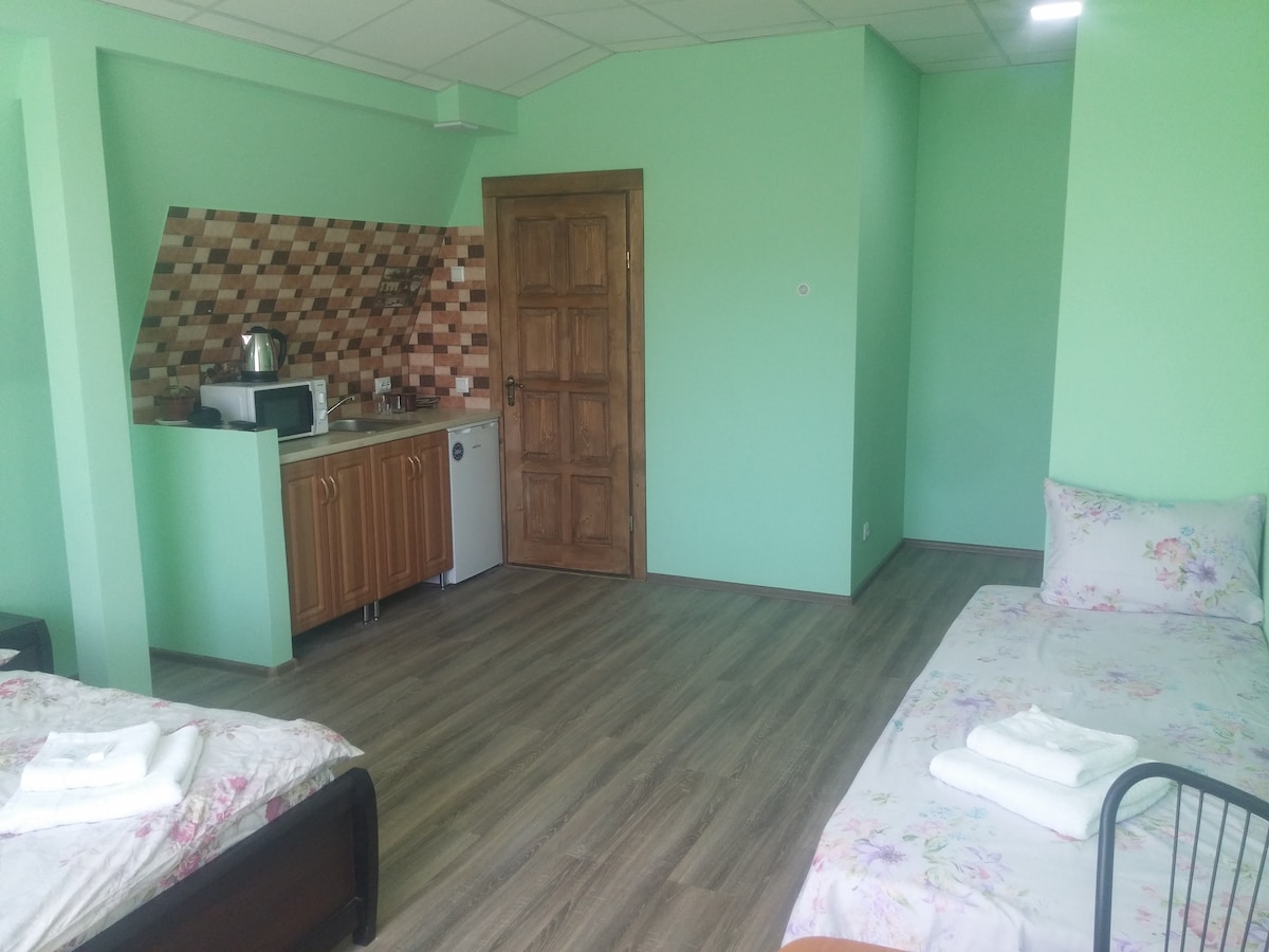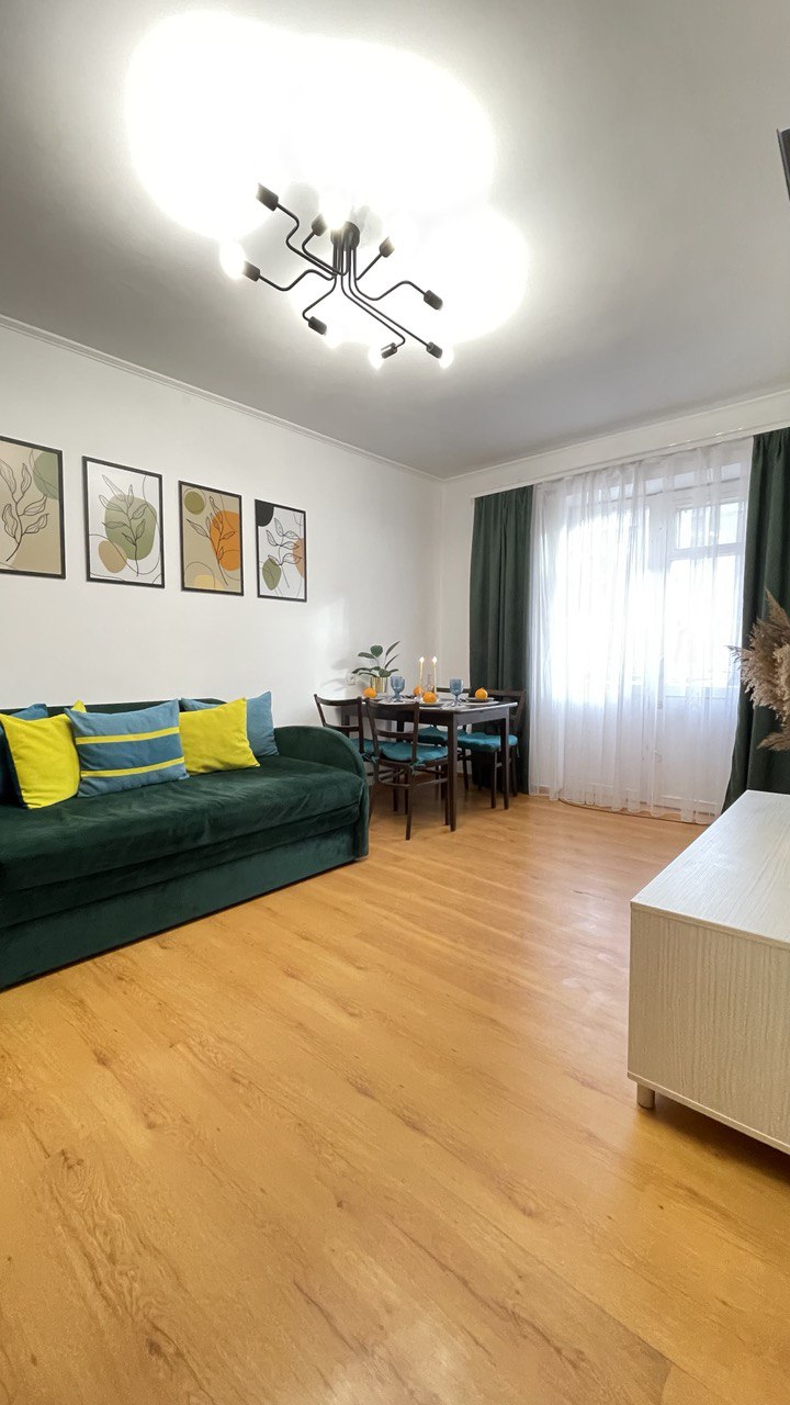 O apartamento está localizado na Main Street, em acesso próximo à fronteira com a República da Romênia. O apartamento possui uma geladeira, um micro-ondas, um fogão de indução, uma máquina de café com café em grãos, um conjunto de pratos para cozinhar, copos, copos, talheres. Roupa de cama, toalhas, secador de cabelo, máquina de lavar roupa estão disponíveis. O apartamento também está equipado com uma TV de plasma com Smart TV e Wi-Fi gratuito. O complexo residencial de tipo fechado está equipado com vigilância por vídeo. Farmácias, cafés nas proximidades.