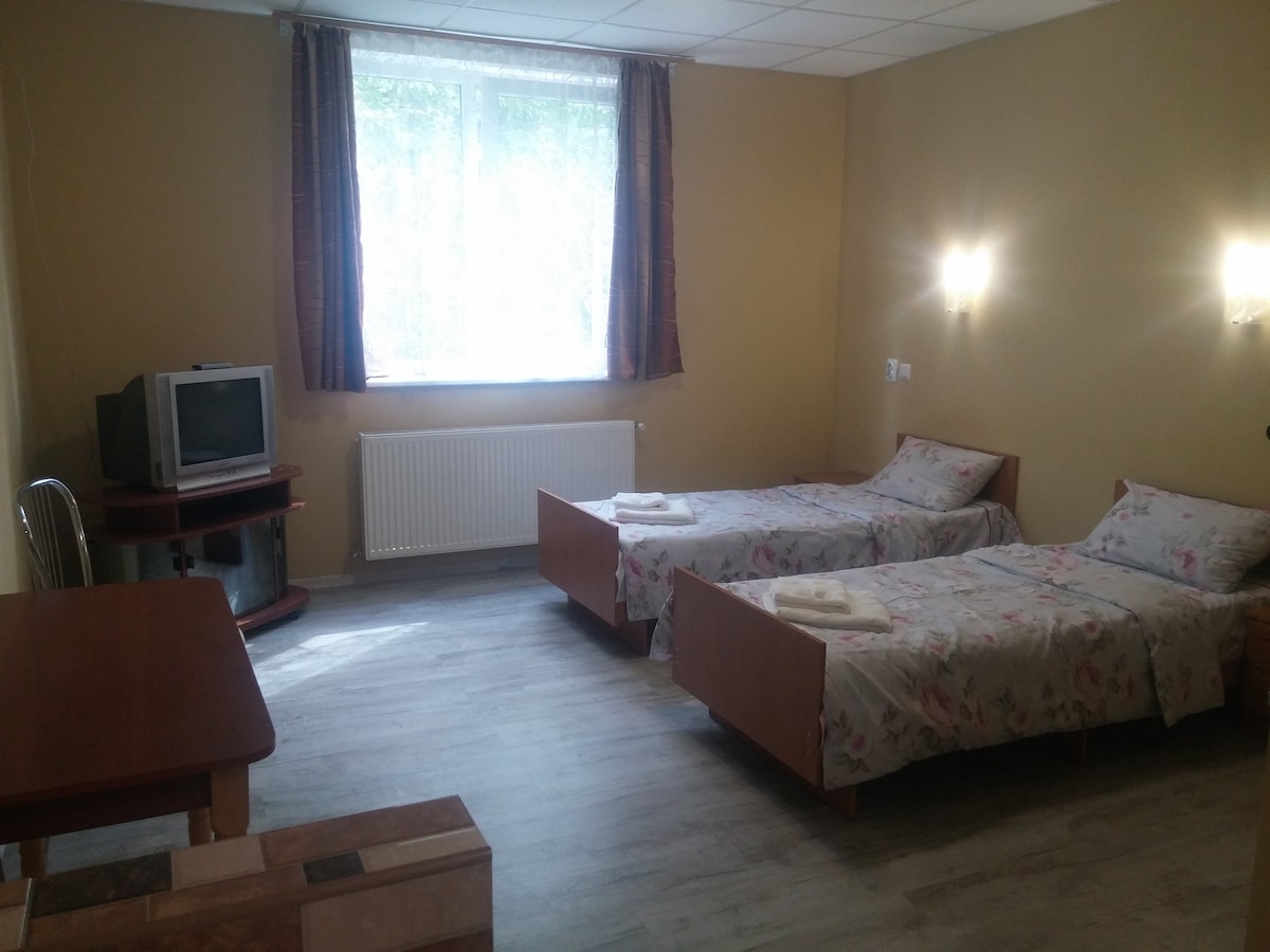 Здається квартира з двома окремими ліжками. У квартирі є телевізор з плоским екраном, безкоштовний Wi-Fi, санвузол з душем. Кухня укомплектована електроплитою, електрочайником, холодильником та необхідним посудом. Відстань до центру міста – 2,6 км, до автовокзалу – 3 км, до залізничного вокзалу – 4 км, до аеропорту – 3 км. Шведсько-український медичний центр ANGELHOLM знаходиться за 300 м від квартири.