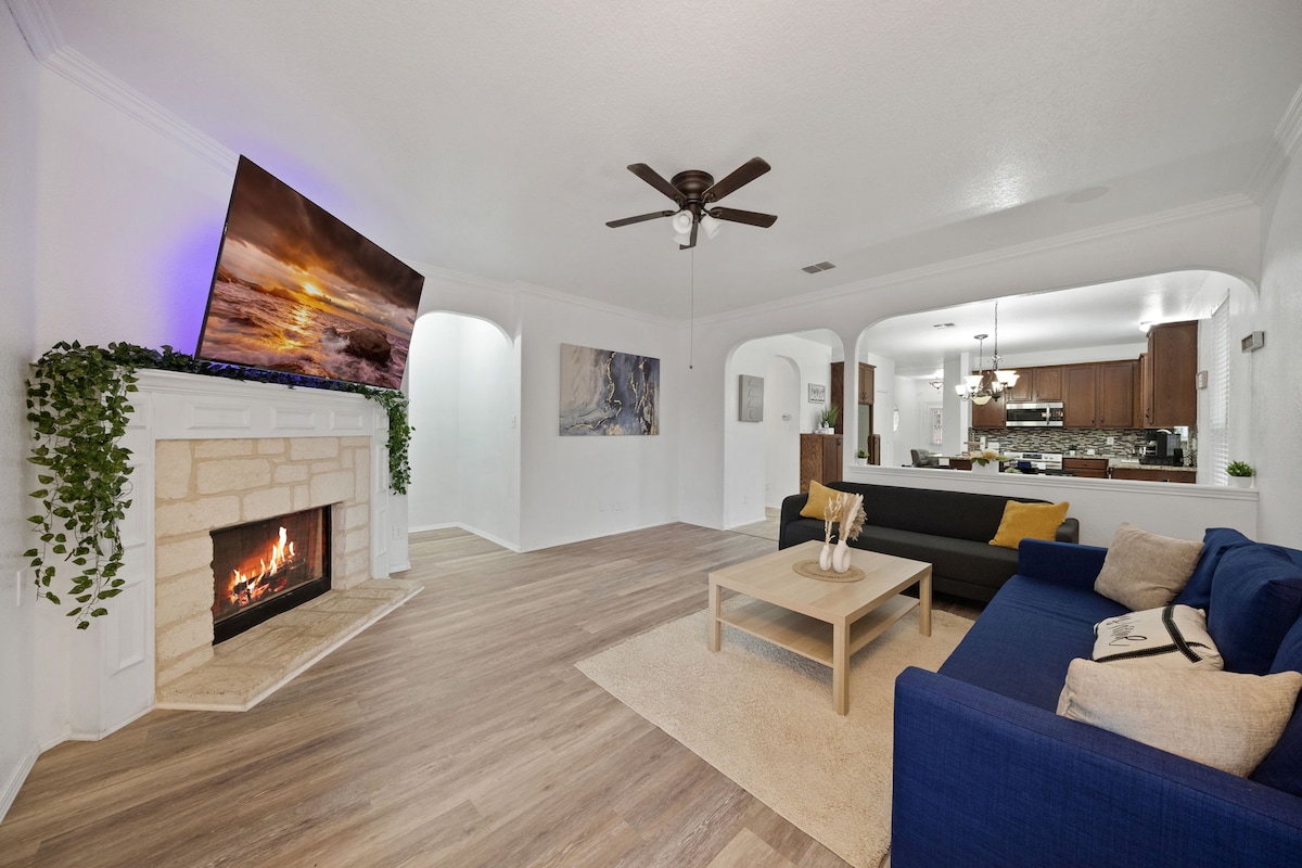 Acomodações modernas com sala de jogos, piscina, SeaWorld e Six Flags