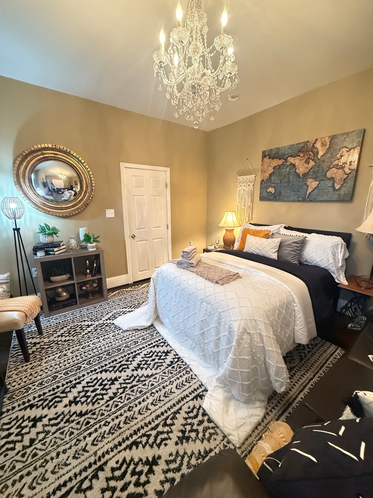 Experimente a tranquilidade arejada neste loft privado, situado em seu próprio andar dedicado em nossa pacífica casa geminada. Embora o espaço não tenha uma porta tradicional, os hóspedes desfrutam de total privacidade graças à sua localização no andar superior e ao layout bem pensado. Com luz natural, móveis confortáveis e um ambiente sereno, é perfeito para hóspedes que buscam um refúgio tranquilo com um toque de personalidade.