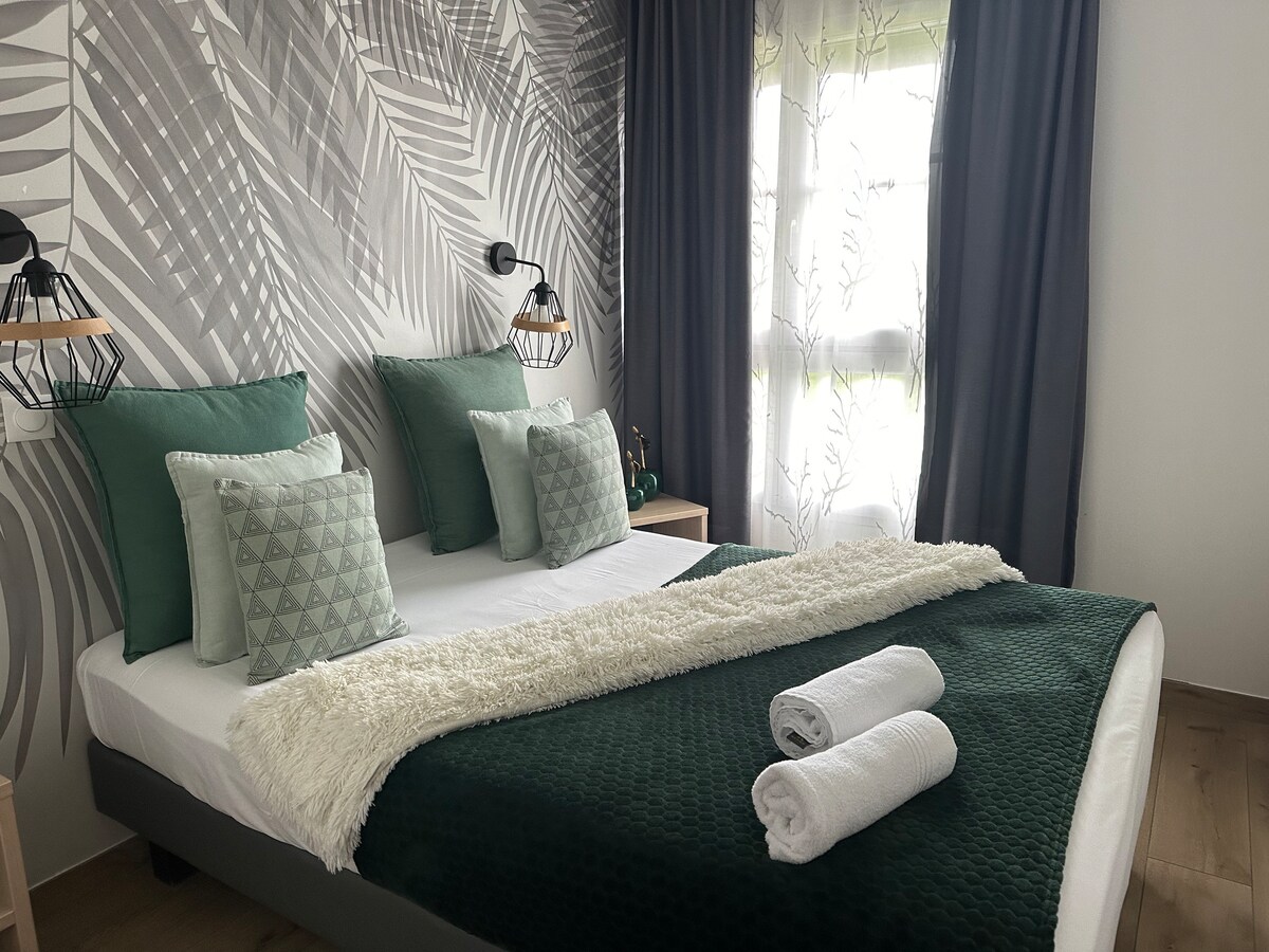 Meus queridos convidados, Venham descobrir o nosso apartamento, idealmente localizado a poucos minutos da Disneyland e da Village Nature, para uma estadia memorável. Esta acomodação luminosa e refinada, com cores suaves, oferece um cenário perfeito para relaxar após um dia de aventuras. Relaxe na piscina aquecida, um verdadeiro refúgio de paz. Estacionamento disponível mediante solicitação, a um custo de 10 euros por dia. Faremos tudo para que sua estadia seja inesquecível.