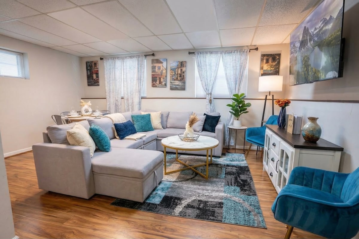 Relaxe nesta unidade de nível superior calma e elegante de 3 quartos/2 banheiros completos. Outro Airbnb está na unidade de porão acabada. O espaço é completamente seu e não há acesso à outra unidade do porão. A única área compartilhada é o deck traseiro. A unidade tem uma cozinha completamente atualizada com aço inoxidável e granito. O quarto principal tem uma cama queen super confortável e um banheiro principal que tem um belo chuveiro. O quarto de hóspedes tem outra cama queen size e a área de escritório tem um futon. Elegância e estilo boho romântico em todos os lugares!