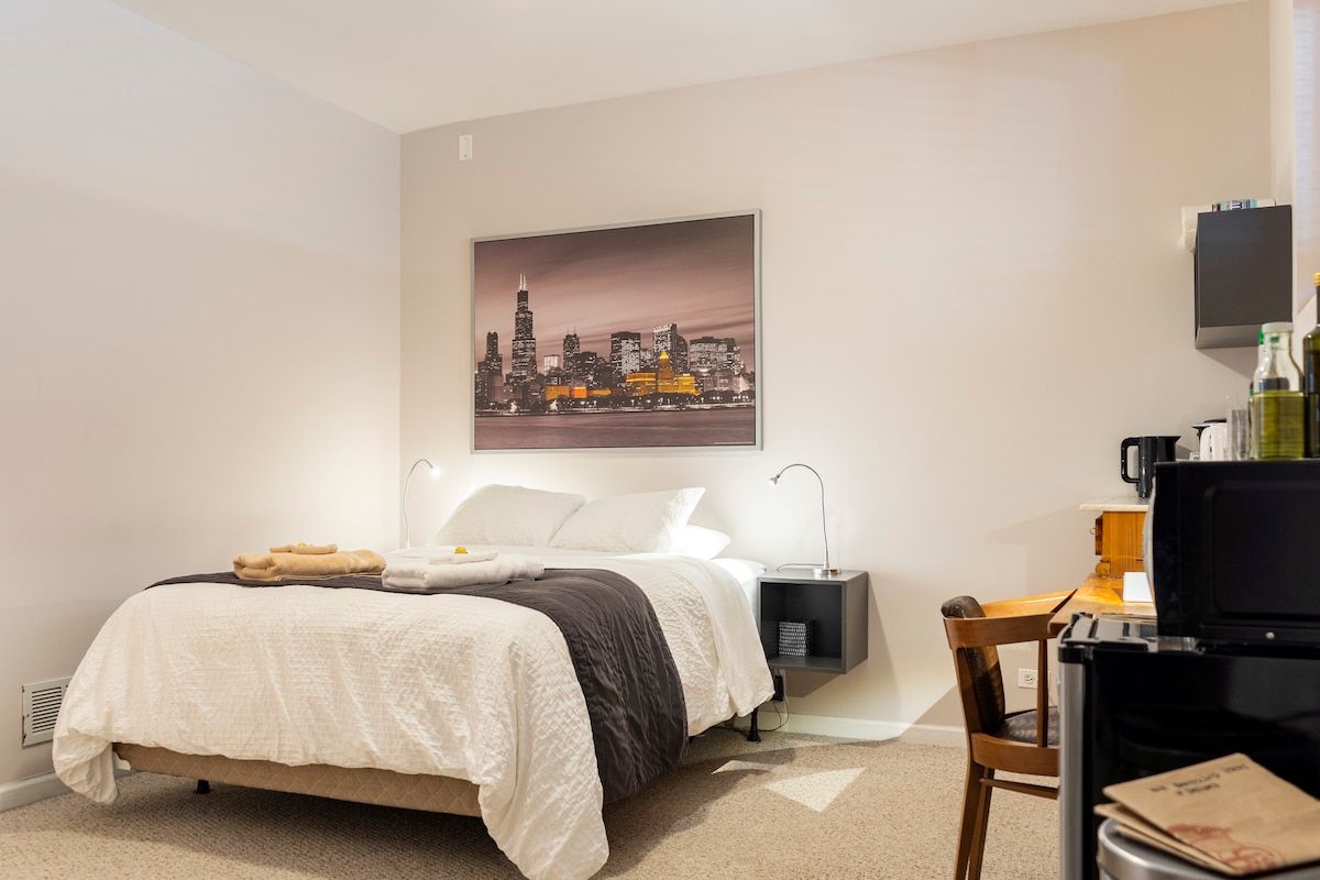 Este apartamento é um grande estúdio no coração do Lincoln Park! Nova construção e todos os móveis e eletrodomésticos são novos. É perfeito para um casal...mas também pode dormir 3-4 para uma viagem de meninas ou uma família com crianças pequenas. Você entra com seu código de teclado pessoal que lhe damos alguns dias antes da sua estadia. E estamos sempre disponíveis por mensagem de texto ou e-mail caso você tenha alguma dúvida sobre o apartamento. Situado em Lincoln Park, este apartamento fica a poucos passos de compras ao longo da Armitage e Halsted Avenue. Há mercearias, restaurantes e cafés nas proximidades, além de estações de trem de linha vermelha e marrom que acessam o centro e outras partes da cidade. O estacionamento na rua é relativamente fácil ao redor do apartamento e oferecemos adesivos de estacionamento residencial gratuitos no apartamento na mesa. Oferecemos também um espaço de garagem limpo (com conexão EV gratuita, caso você precise) por $ 20/noite.