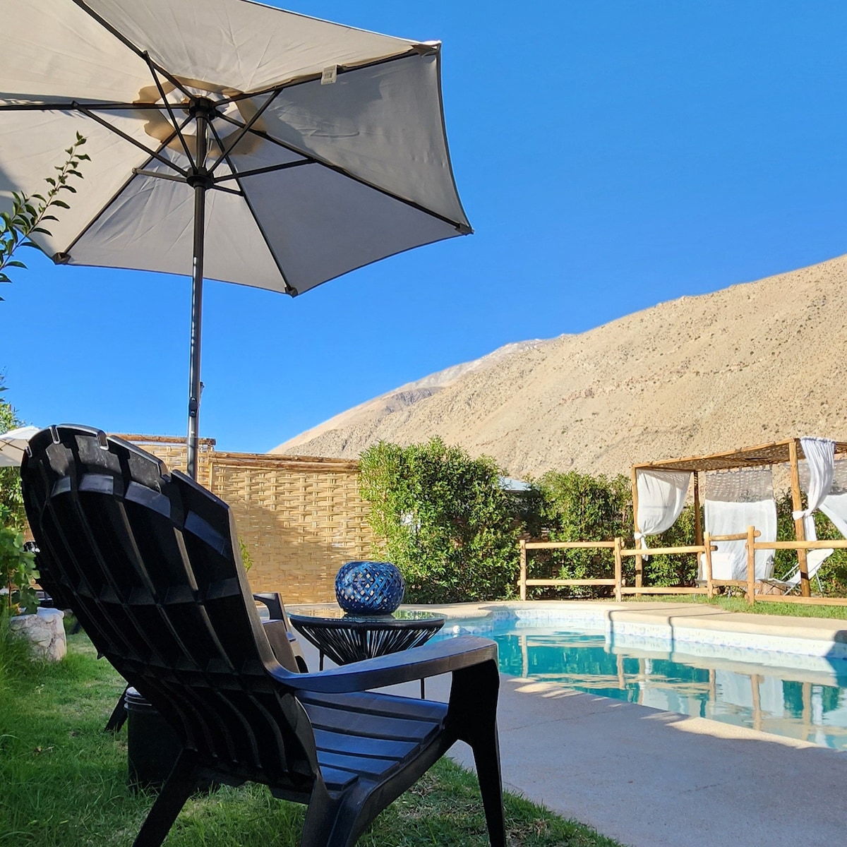 Aproveite suas férias em nossa acolhedora Casa de Barro. Além do seu belo terraço com a melhor vista para as paisagens do Elqui e as estrelas, também tem uma sala de estar aconchegante, cozinha equipada, sala de jantar e quarto com banheiro privativo. A cabana está localizada em Pisco Elqui, a apenas duas quadras (600 metros) da praça da cidade. O belo jardim com cachoeira, quiosque, rede e terraço convidam a descansar e desfrutar do encanto do vale de Elqui.