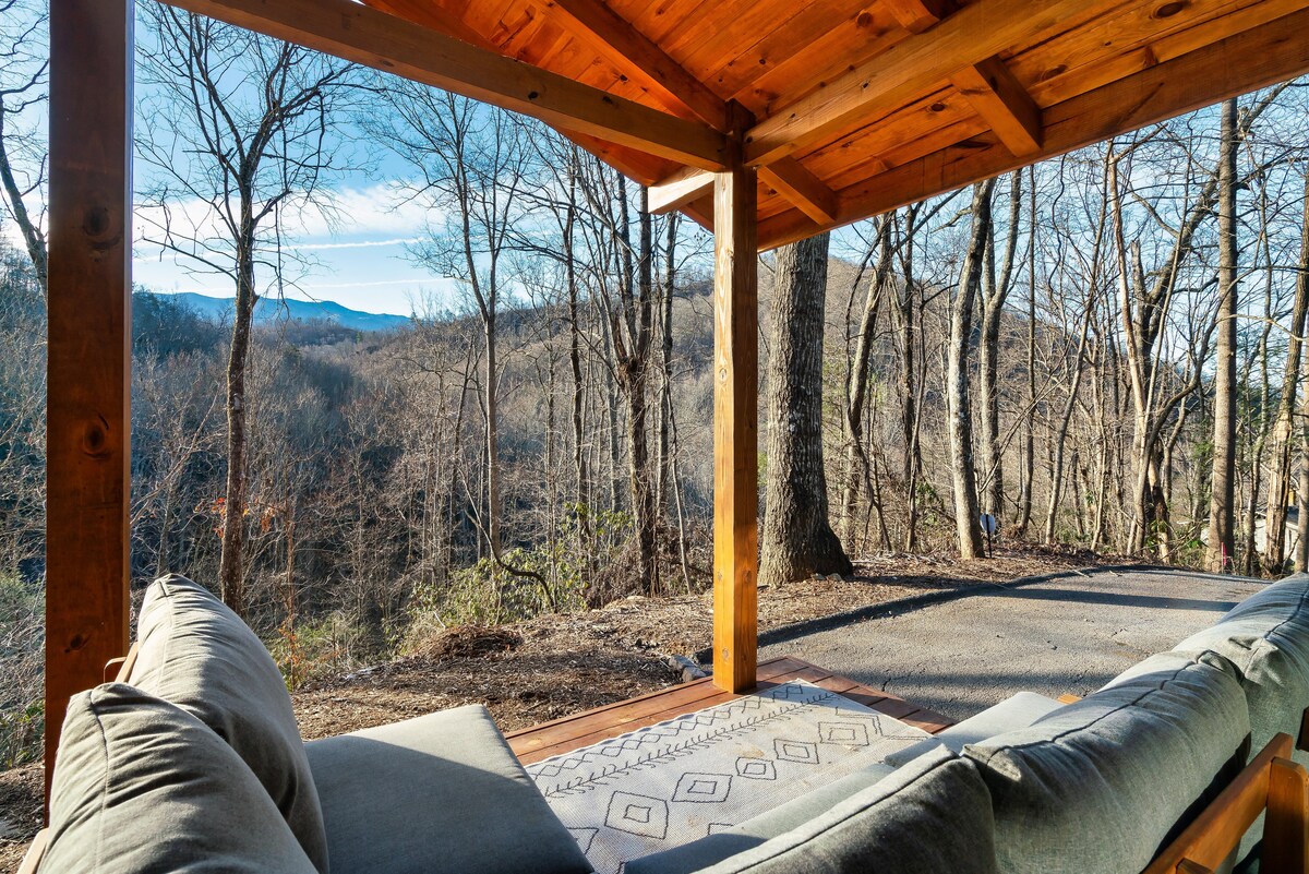 Uma bela e tranquila escapada - Aconchegue-se com vistas para a montanha, uma mesa de fogo e uma cadeira de massagem de luxo enquanto o mundo desacelera. Perfeito para casais que querem um retiro de férias tranquilo e romântico. Chalé 💘 romântico para casais Vista para o pôr do sol nas montanhas🌅 durante todo o ano 💦 Banheira hidromassagem Carregador de⚡️ veículos elétricos Cadeira 😃 de massagem ✨ Ideal para luas de mel, aniversários ou "só porque" ❤️ Este chalé é a paz interior que sua alma anseia. Reserve agora — Kindred Spirits não decepcionará