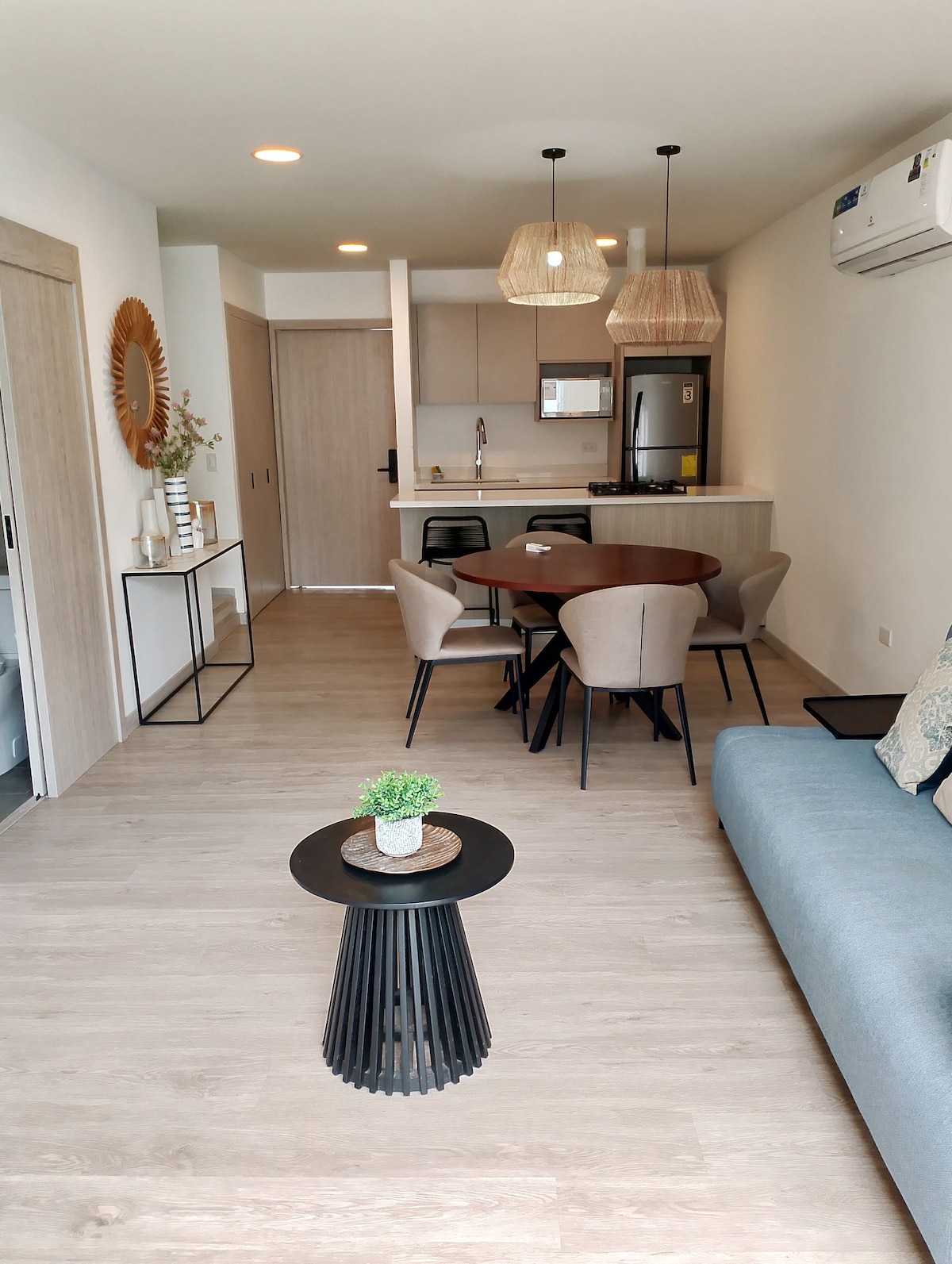 Lindo apartamento de um quarto a 200 metros da praia de Chipípe (você pode vê-lo da sala de estar), Tem 1 quarto equipado com uma Smart TV, uma sala de estar com uma cozinha aberta de estilo americano, 1 sofá-cama e uma área de jantar ou espaço de trabalho. Está equipado com ar condicionado split nos 2 quartos, embora seja um apartamento bastante fresco. O bairro é tranquilo, muito perto da base naval e a 500 metros dos bares e restaurantes de Chipipe. Não perca!