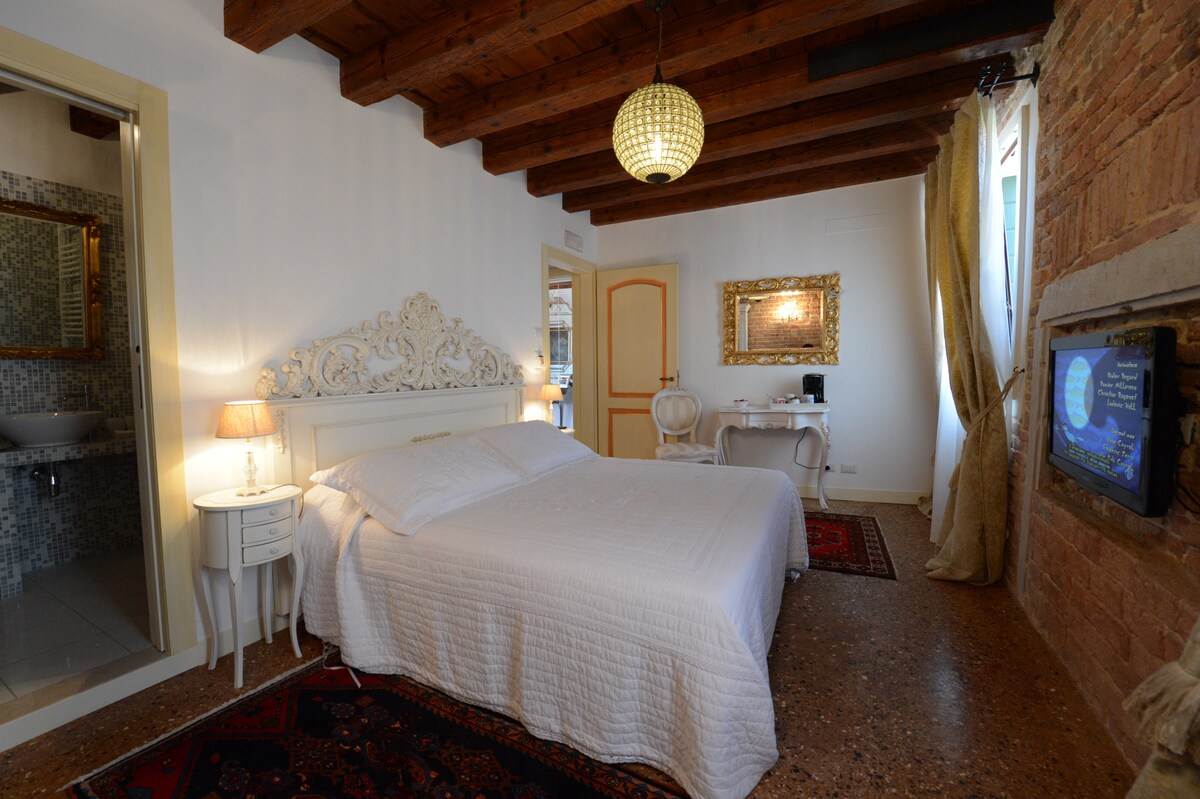 La camera "Romantique Venise" offre un letto matrimoniale, aria condizionata e riscaldamento autonomo, con bagno privato all'interno della stanza.