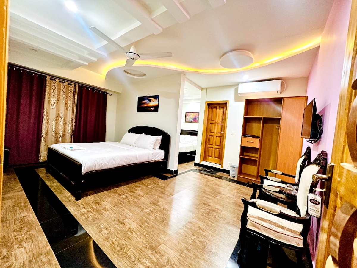 Have fun with the whole family at this stylish place. ‼️GUESTHOUSE IN ABBOTTABAD‼️ 🏡"Your Home away From Home" ✔️ 5 Minutes Drive To Abbottabad Main City ✔️ Good For Families ✔️ Fully Furnished & Fully Independent ✔️ 2 Bedroom, Hall, and Kitchen. ✔️ With Guest Room & Attached Washroom ✔️ Huge Parking can fit 4 cars. ✔️ Wifi Available ✔️ Generator Available ✔️ 24 x 7 Assistance Available ✔️ 24 x 7 Water Geyser