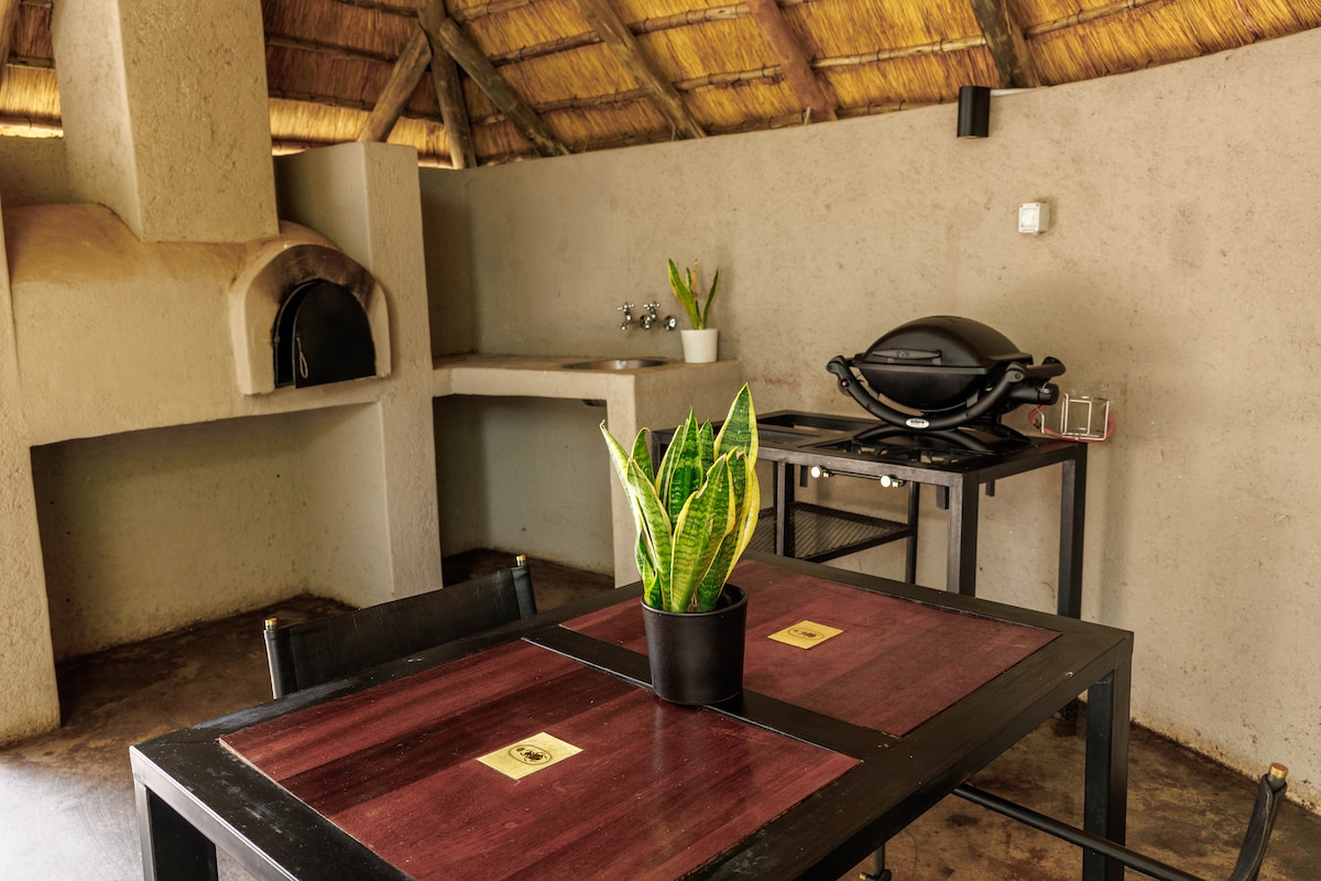 Bem-vindo ao seu aconchegante retiro Kasane — a apenas 1 km do Parque Nacional Chobe e a 7 km da Ponte Kazungula, onde quatro países se encontram. Nossa moderna casa de campo de dois quartos tem ar condicionado, Wi-Fi Starlink, uma smart TV e uma cozinha totalmente equipada com uma máquina de lavar louça e uma máquina de lavar roupa. Lá fora, desfrute de uma lareira e estacionamento seguro com portão motorizado e alarme. Não à beira-mar, mas privado, acolhedor e perfeitamente posicionado para safáris e aventuras transfronteiriças.