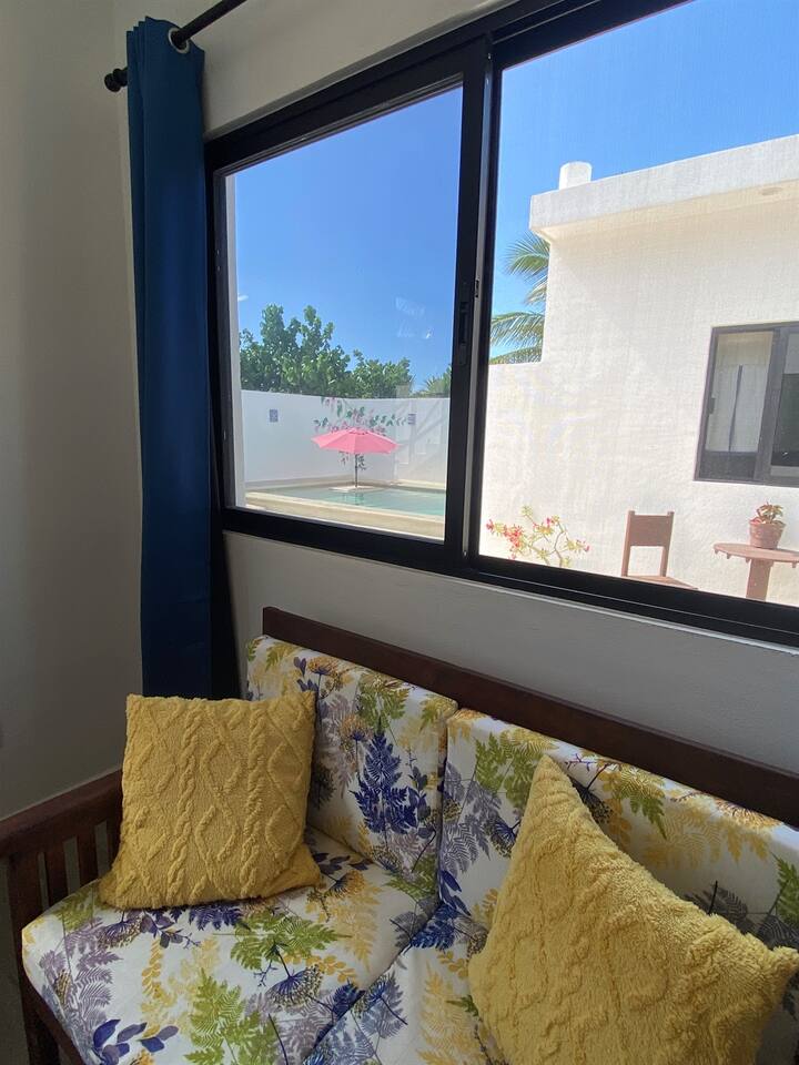 Apartamento completo, privativo e independente com banheiro e cozinha próprios, mobiliado e com todos os serviços, ar condicionado, cama de casal, internet, TV com Netflix, água quente. Parada de ônibus para o centro na esquina, perto da parada Ietram para o trem maia, na mesma rua você encontrará tudo o que precisa, lojas, mini-super, Oxxo, restaurantes, lavanderia, praças, visitar as atrações da cidade de Mérida, praias, cenotes e sítios arqueológicos próximos.