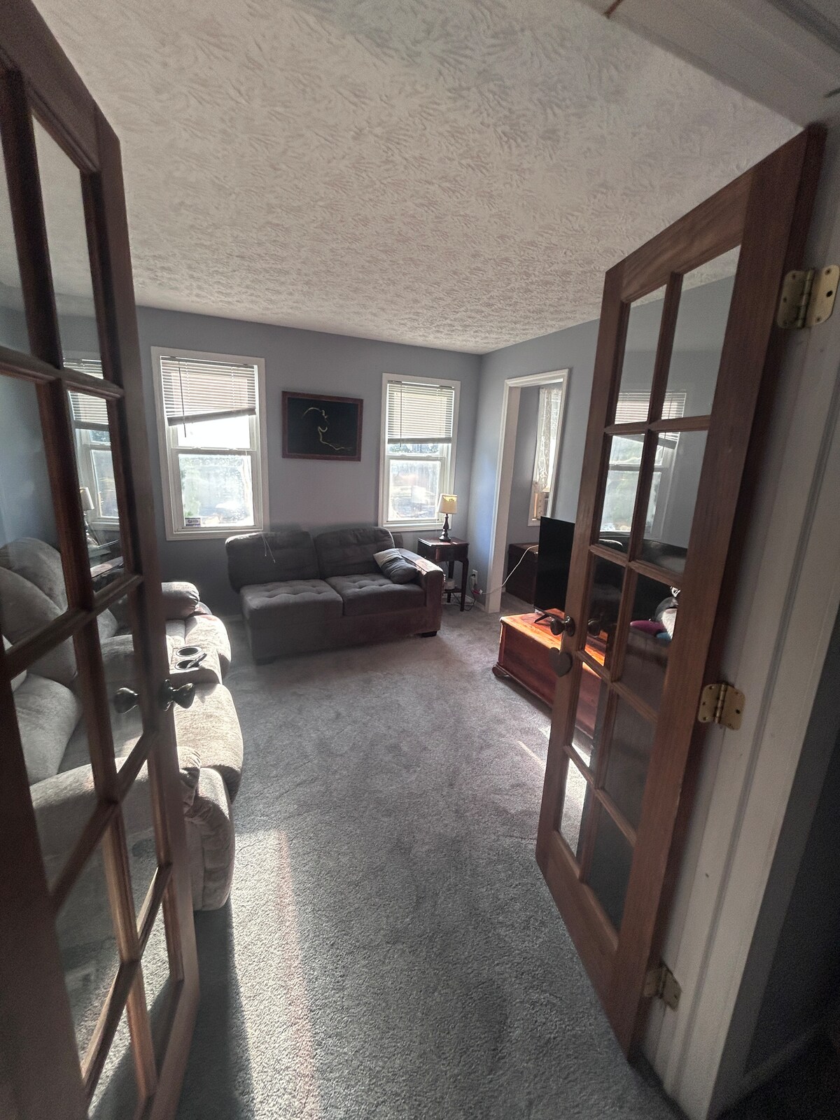 Primeiro, este é um apto. privado. Não é compartilhado com ninguém! Um belo lugar aconchegante com uma cozinha com todas as comodidades. Claraboias fazem deste lugar um lugar alegre e brilhante, não importa qual seja a estação. Máquina de lavar e secar roupa com um grande closet. Um trem passa a cerca de uma milha de distância algumas vezes por dia. Você pode ouvi-lo à distância. Eu mesmo nem percebo, mas queria avisar. NÃO RESERVAMOS PARA MORADORES LOCAIS! Você deve falar comigo primeiro, a menos que seja aprovado.