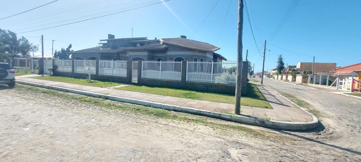 Casa inteira; 3 quartos - Acomoda confortavelmente 9 2 banheiros, Pátio Grande, Segurança 24 horas, Vizinhança tranquila com moradores. Mercado próximo. Praça, cancha de bocha/ futebol nas redondezas. Menos de 5 min do centro de Cidreira/ Pinhal de carro (caminhando uns 20/30 min). Casa fornece: geladeira, freezer e utensílios domésticos completos. Máquina de lavar roupa. Cadeira de praia.