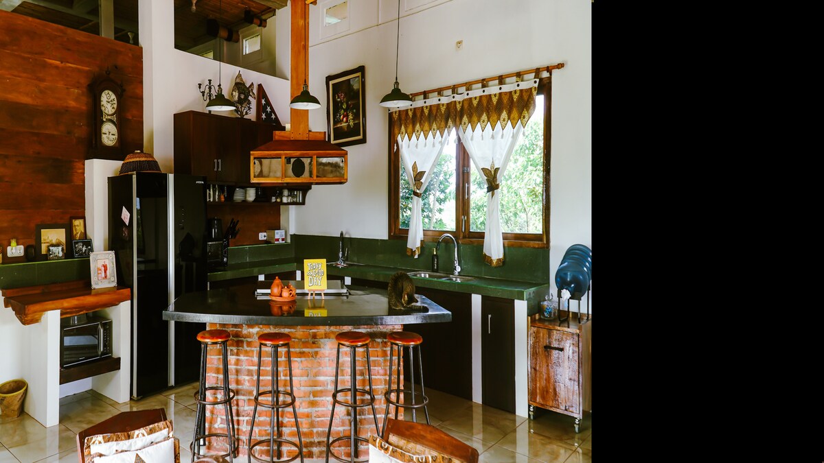 Bem-vindo a Rumah Tepi, um aluguel aconchegante de casa de férias em Pangandaran. Nossa elegante casa de 2 quartos possui um pequeno jardim cheio de ervas de cozinha e plantas de uva, criando um espaço tranquilo e convidativo. Além disso, é apenas uma curta caminhada até a praia! Também estamos convenientemente conectados ao Tepi Pangandaran, uma cafeteria encantadora onde você pode relaxar e desfrutar de sua bebida favorita. Não vemos a hora de hospedar você no Rumah Tepi! 🖐🏼