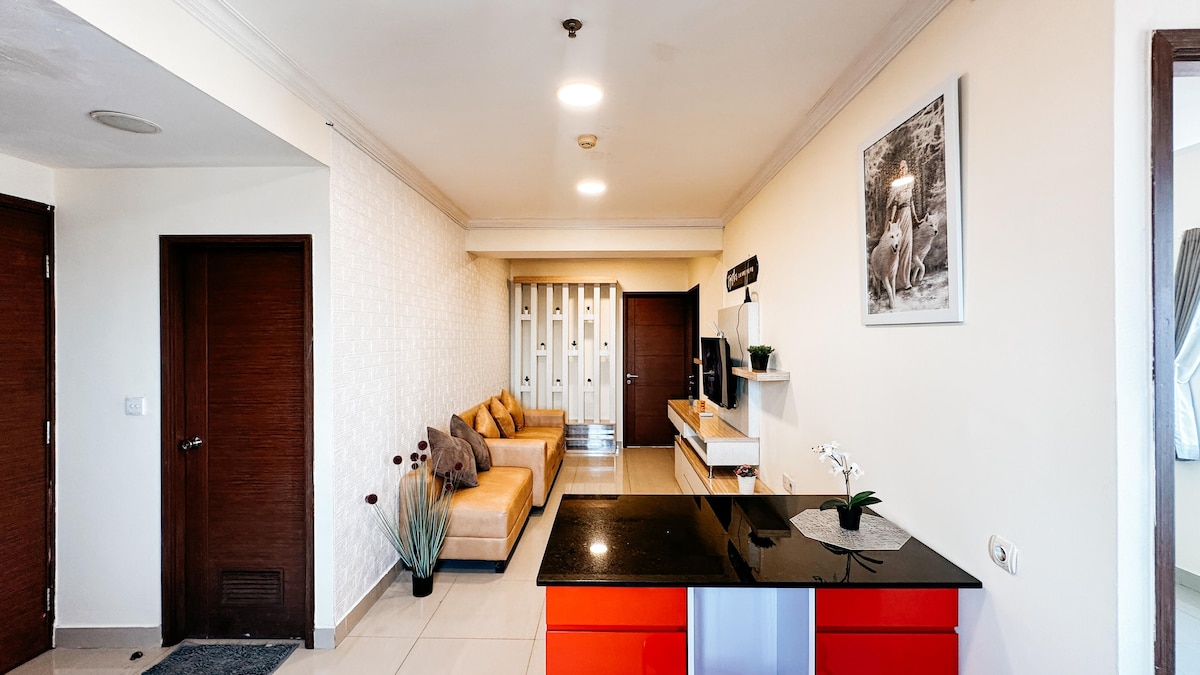 Embrace the minimalist lifestyle with this 2 bedroom apartment, located in the breathtakingly beautiful downtown of Bandung. This unit features : - Fast internet - 2 AC - TV (include netflix) - Water Heater - Hairdryer - Iron - Fridge - Kitchen Set - Free indomie and water (2 indomie & 2 mineral water/night) Look no further for the perfect place to call “home" ⌂♡.