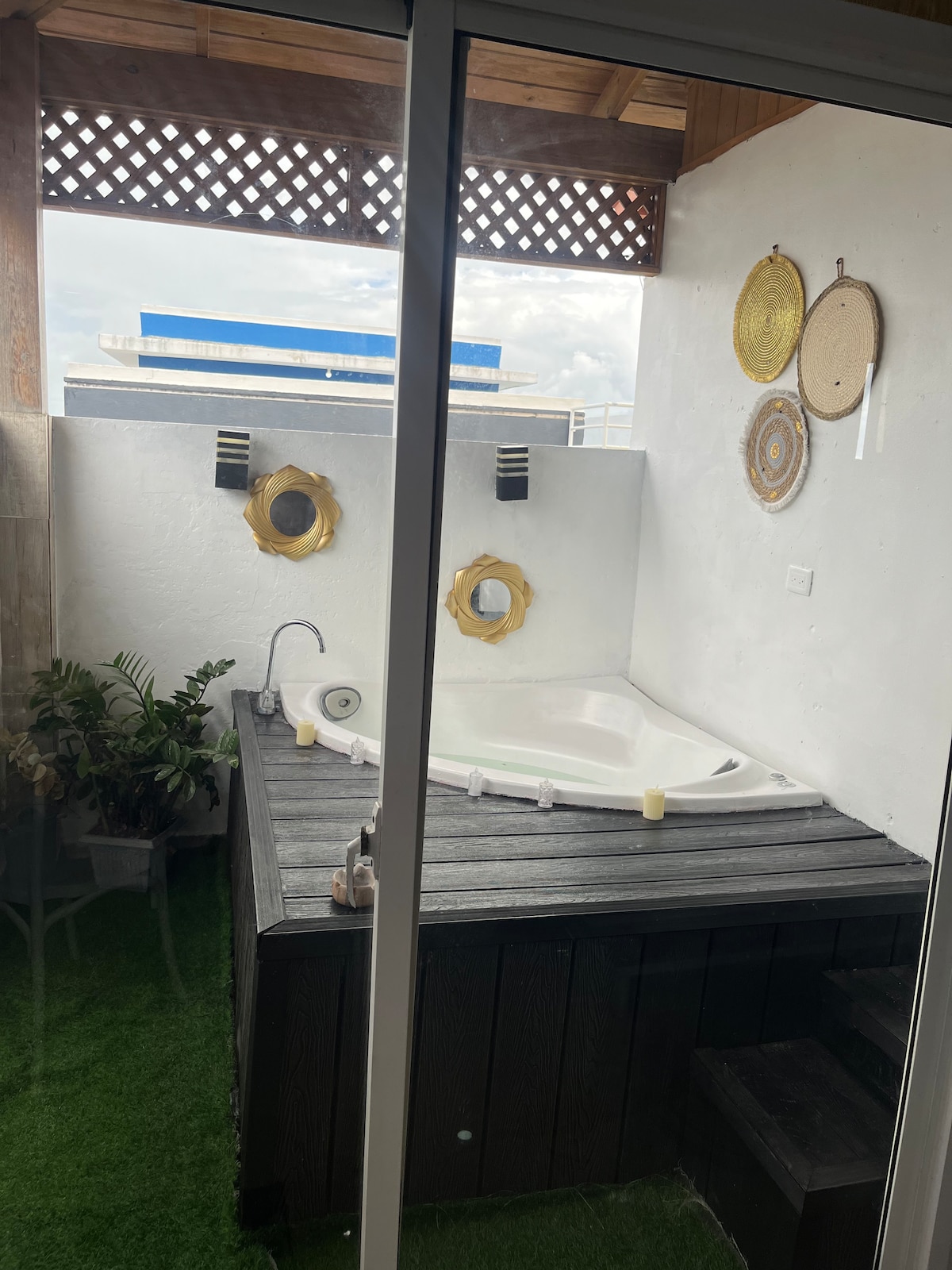 Tome sol ou relaxe em uma cadeira suspensa, entre na jacuzzi totalmente privativa na cobertura após o pôr do sol e olhe para as estrelas A piscina de tamanho de jacuzzi é apenas de água fria... uma opção refrescante no calor tropical. O apartamento fica em uma rua tranquila perto da catedral e do Parque Duarte, a uma curta distância a pé de pontos turísticos históricos, restaurantes, bares e atrações culturais. Há estacionamento gratuito na rua, recomendamos fortemente deixar o carro em uma das opções de estacionamento vigiadas nas proximidades à noite.