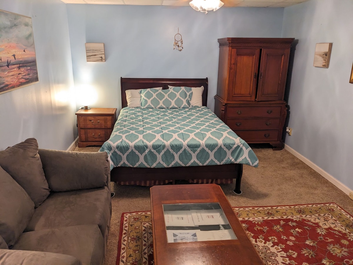 Relaxe nesta aconchegante suíte rústica moderna a menos de 20 minutos do aeroporto e perfeita para profissionais ou casais que viajam. Este elegante espaço privado combina o charme de meados do século com vibrações de caverna e possui uma entrada privada, bar e área de estar, geladeira, micro-ondas e um espaçoso chuveiro. Uma lavanderia exclusiva adiciona conveniência para estadias mais longas. Desfrute de conforto, privacidade e fácil acesso à cidade neste retiro tranquilo.