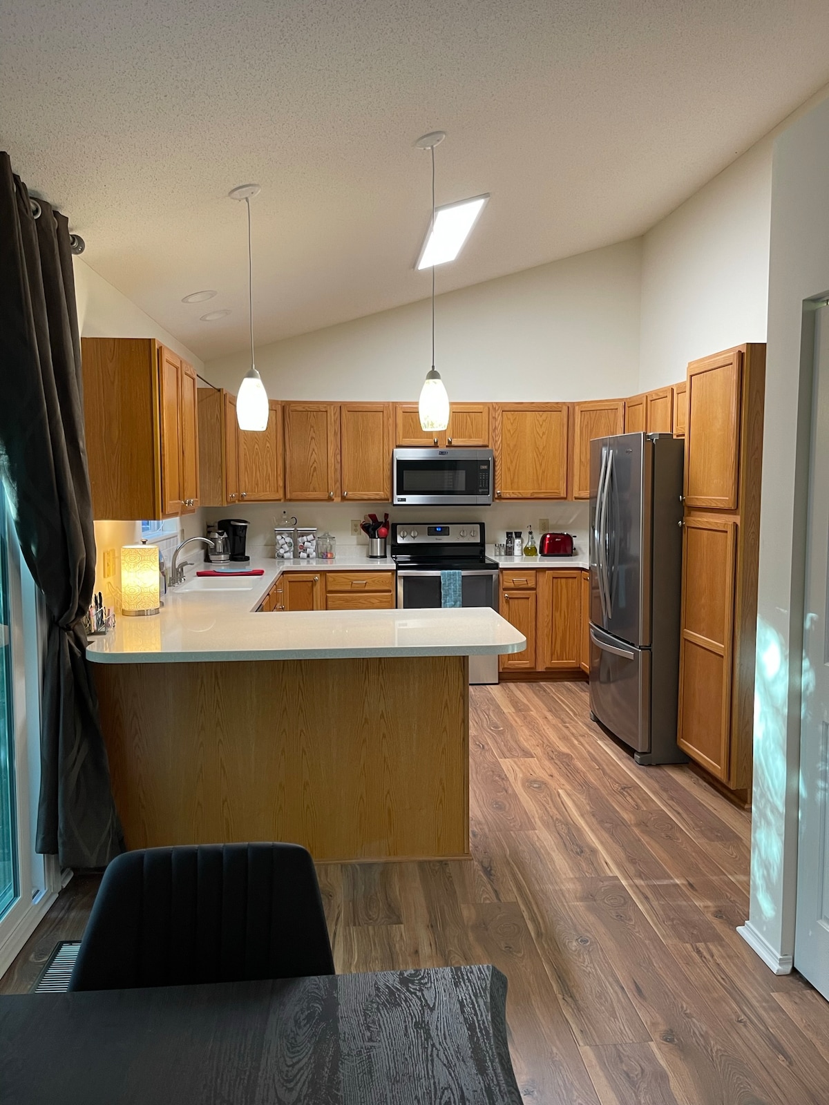 Um ótimo lugar para relaxar e desfrutar de Bloomington. Um bairro tranquilo perto do centro da cidade e da IU. Suíte principal com cama queen size e banheiro privativo, 2º quarto com cama queen size, 3º quarto com 2 camas de solteiro. Todos os quartos e uma grande sala oferecem TV YouTube gratuita. Cozinha grande com barra de café da manhã, sala de jantar e ótima sala. O quintal abriga alguns cervos visitantes mansos o suficiente para conferir o que você está fazendo. Churrasqueira e mesa/cadeiras ao ar livre para um churrasco. Atualizações recentes! Garagem anexa. TVs em todos os quartos.