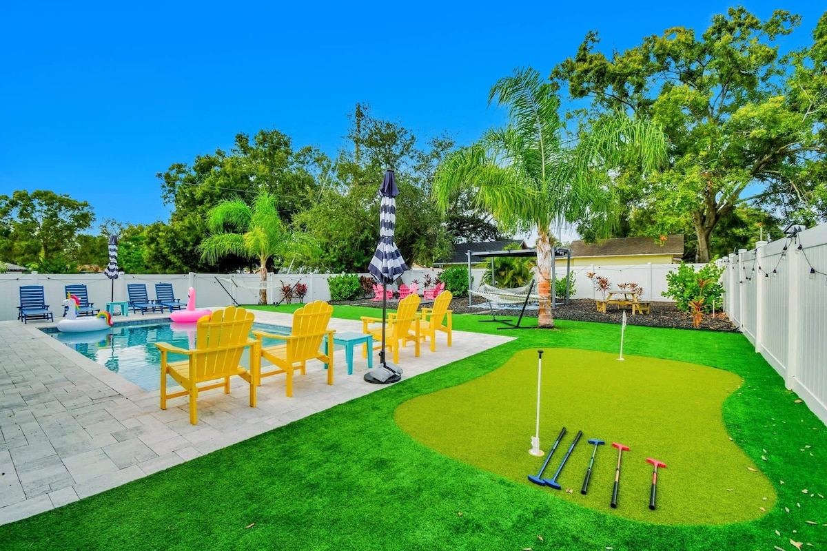Oásis em Tampa: piscina privativa, golfe, jogos e fogueira