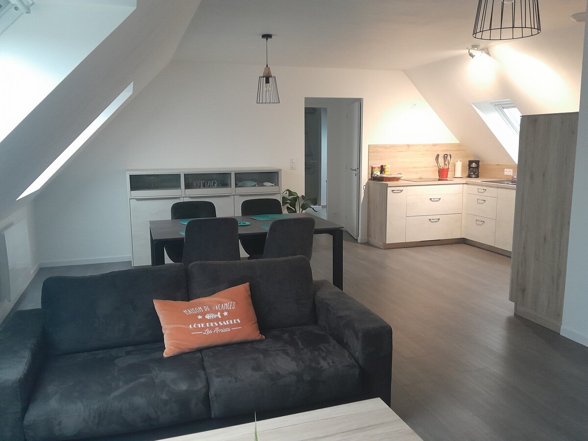 Venha desfrutar de um apartamento remodelado muito bem equipado no 2º andar. O apartamento está localizado perto de lojas (Boulangerie/Pâtisserie. Açougue/Charcutaria. Fumar /Imprensa. Superfície Grande) e 5km (8Mn de carro) das belas praias de areia branca. Convenientemente localizado para visitar nossa bela região , Plouescat, Santec, ST Pol de Léon, Carantec Toalhas e roupa de cama fornecidas Animal de estimação aceito mediante solicitação. Não vejo a hora de receber você. Christelle e Alain