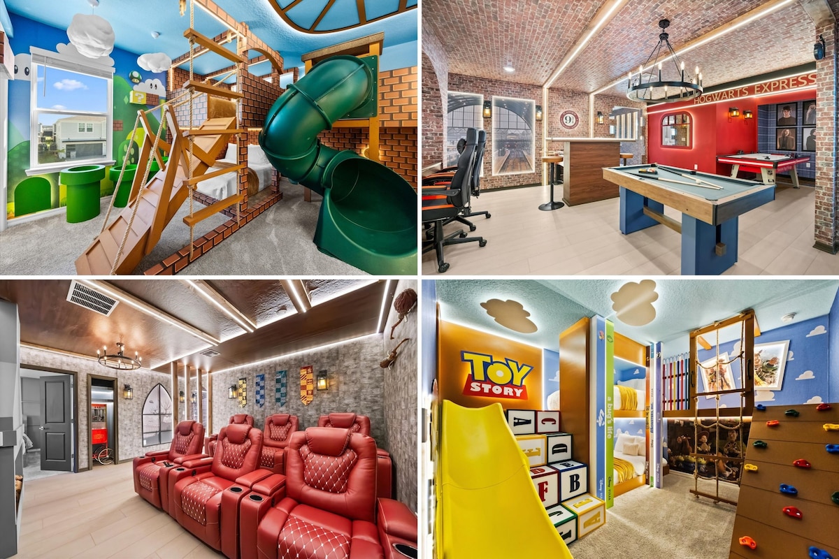 Experiência Disney com piscina, sala de jogos, portal "mágico"