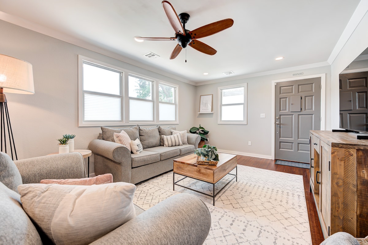 Projetado para ter todos os extras de um bom hotel, mas com a sensação e o espaço de uma casa. Este é o seu lugar para se aconchegar, relaxar e aproveitar! Localizada em um lote de bairro familiar, esta casa tem cozinha completa, dois pátios e um quintal completamente fechado. Fogueira e s'mores de cortesia também são seus, nesta casa encantadora e confortável.