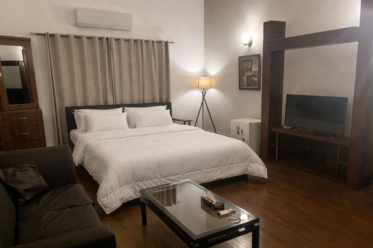 Situada no coração de Karachi, a nossa pousada oferece um retiro tranquilo em meio à agitação da cidade. Desfrute de acesso exclusivo à nossa bela área ao ar livre, uma característica rara em Karachi Airbnbs, perfeita para relaxar e escapar. Principais vantagens- • Delicioso café da manhã gratuito para começar o dia • Guia de viagem para explorar Karachi como um morador local • Proximidade a shoppings, restaurantes, universidades, academias, caixas eletrônicos e hospitais • Acomodação segura e protegida com uma atmosfera caseira Traslado do aeroporto