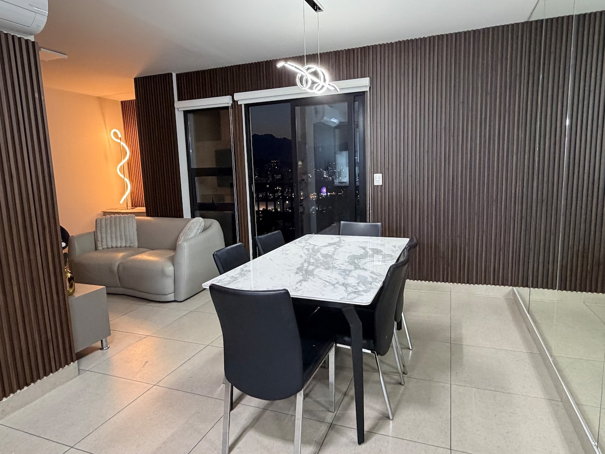 Lindo e espaçoso apartamento localizado na melhor zona de San Pedro Garza García, com belas vistas, num complexo muito acolhedor, com piscina e palapa. Tem wi-fi, smart tv, segurança 24/7, a sala principal tem uma tampa agradável. A sala de jantar tem um piso de madeira e alturas duplas, o que a torna muito quente e brilhante. Bem ali, você encontrará um sofá-cama e uma mesa. Há dois banhos completos e meio banho. Tem uma vaga coberta e outra sem teto.