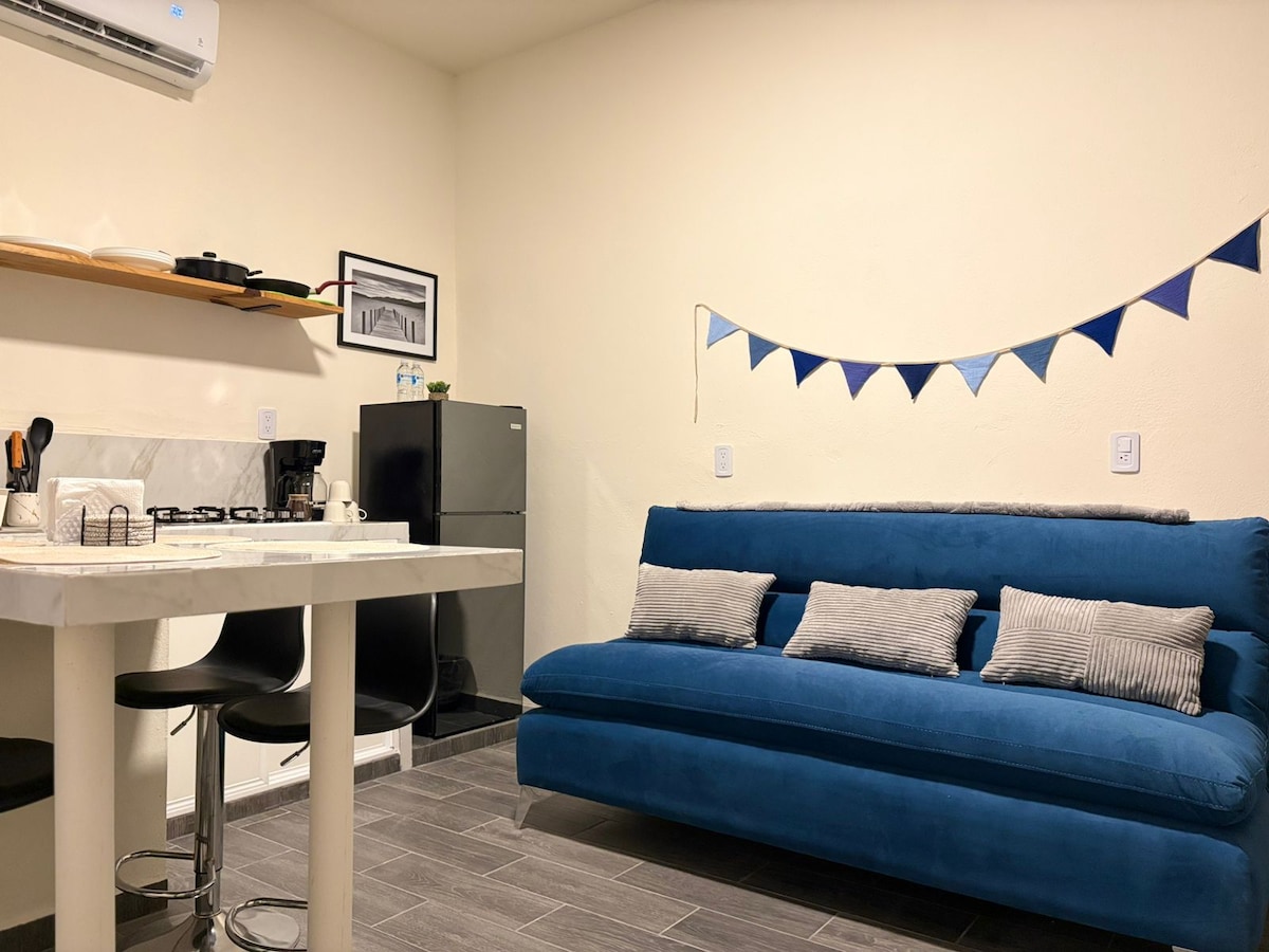 ✨ Departamento con Terraza Privada y ambiente relajante Disfrute de una estancia cómoda y tranquila en este acogedor departamento, ideal para descansar o pasar un buen rato. Cuenta con un rooftop privado perfecto para relajarse, tomar un café por la mañana o disfrutar de la noche con una vista abierta y un ambiente muy agradable. El espacio está equipado con lo necesario para que tenga una estancia práctica y cómoda. Además, su diseño sencillo y moderno creando un ambiente limpio y acogedor.