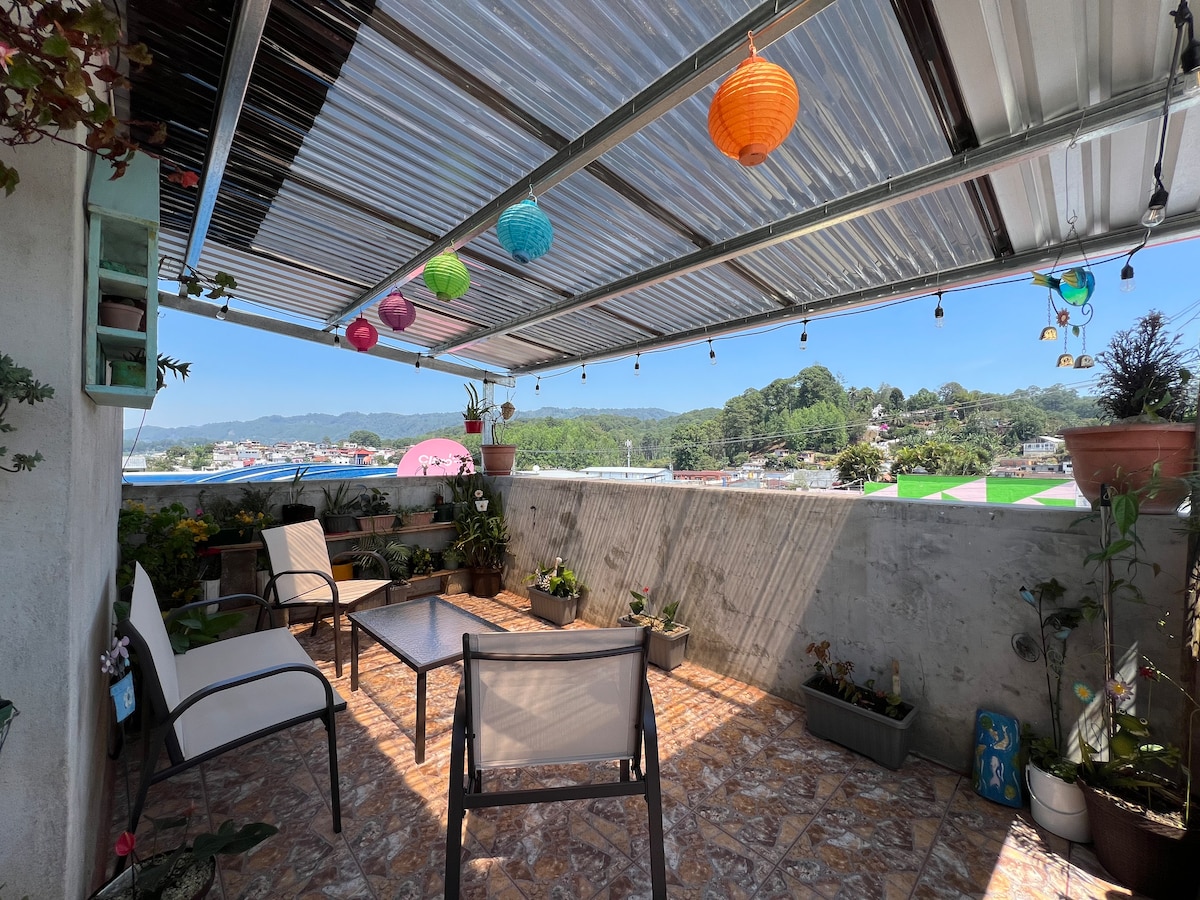 Beautiful mountain home in Guatemala with gardens and artwork throughout the property that provide several picture-perfect areas to relax and enjoy the - nature that Guatemala has to offer. This house has a full kitchen with filtered water faucets, hot water, and multiple patio spaces to enjoy. It is located on the mountain, providing a beautiful view and is close to the city and other amenities.