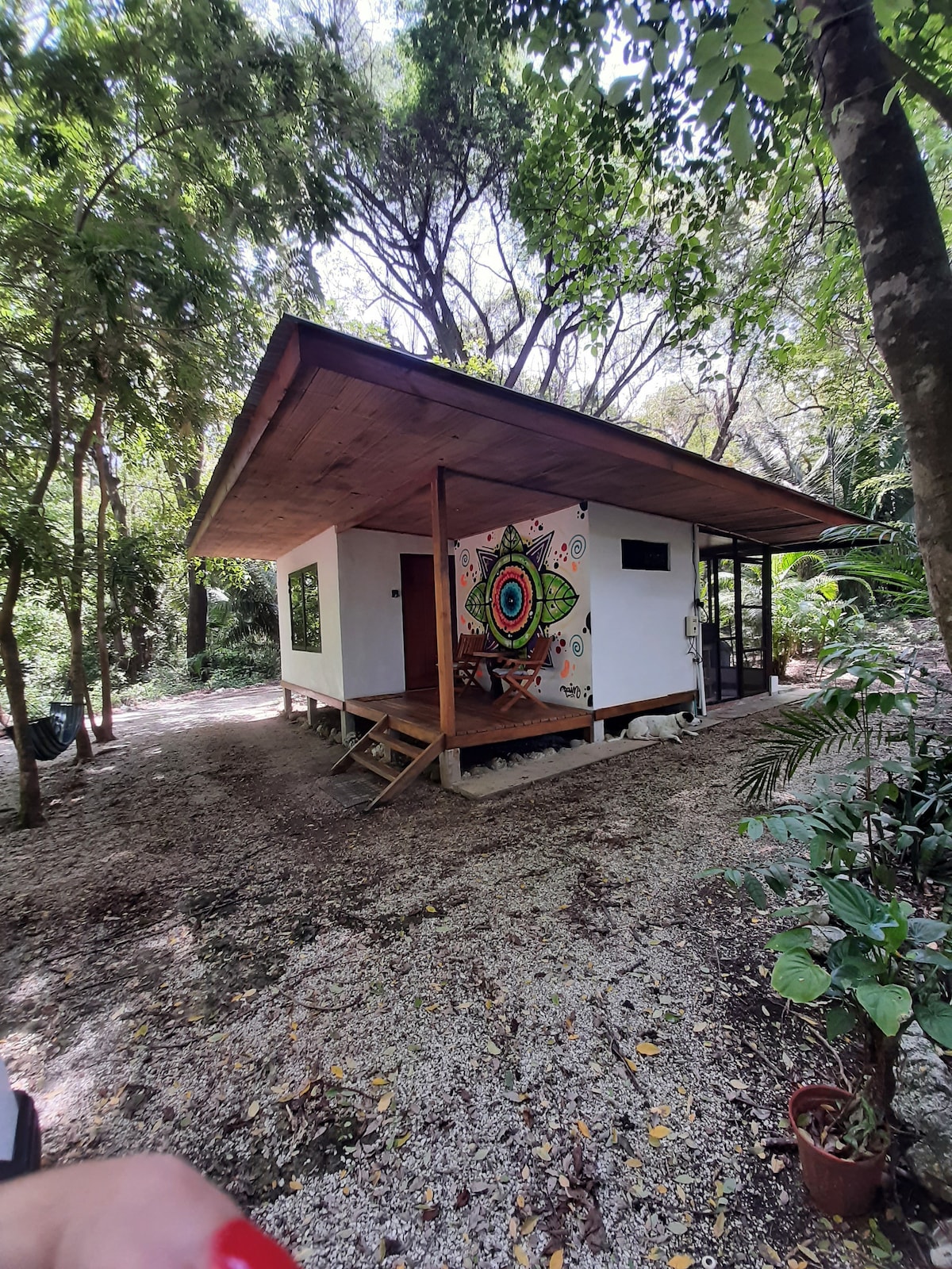 Esta elegante casa de estrutura em A é única. Ela fica no coração da exuberante selva de Mal Pais. Desde um café da manhã em nosso deck suspenso ouvindo o rio e a natureza até tomar uma taça de vinho em nosso jacuzzi ao ar livre, você se sentirá um com este oásis mágico Perfeitamente localizado para aqueles que querem estar perto da ação, mas longe o suficiente para desfrutar da natureza. A poucos minutos de carro de todas as lojas/ restaurantes da cidade e a poucos minutos a pé da praia mais próxima para algumas bebidas ao pôr do sol.