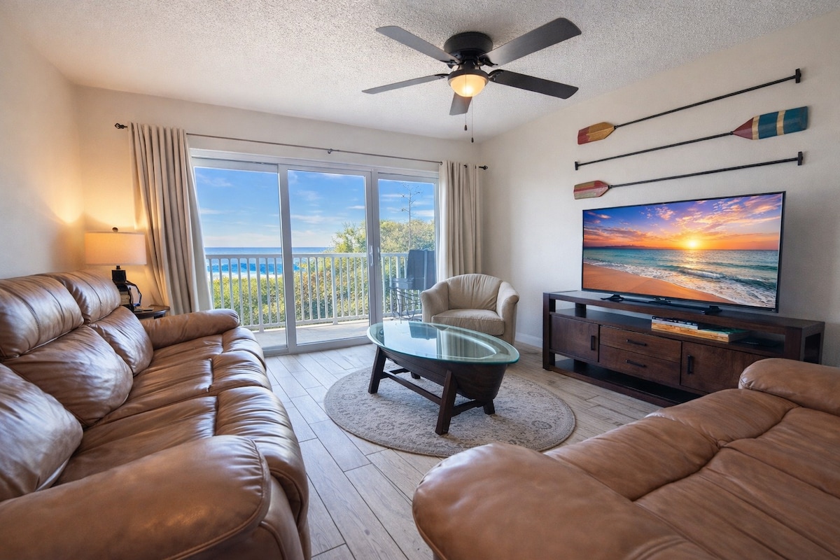 Desfrute de vistas panorâmicas para o mar a partir da varanda privada deste apartamento à beira-mar no segundo andar. * Acesso particular à praia a partir do quintal * Varanda à beira-mar com assentos confortáveis * Localização conveniente no centro de Cocoa Beach * Quarto com cama queen size * Cozinha completa * 2 Smart TVs com cabo * Wi-Fi gratuito * Vaga de estacionamento gratuita * Banheiro completo * Lavadora e secadora na unidade * Sofá futon dobrável tamanho Queen * Equipamentos de praia e toalhas * Artigos de higiene pessoal, café e chá de cortesia